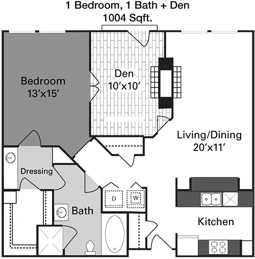 Floor Plan 1x1 den - 1,022 Sqft
