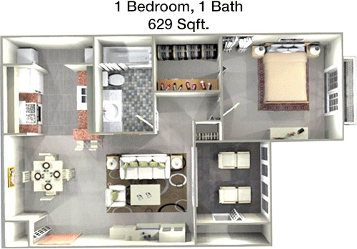 Floor Plan 1x1 - 613 Sqft
