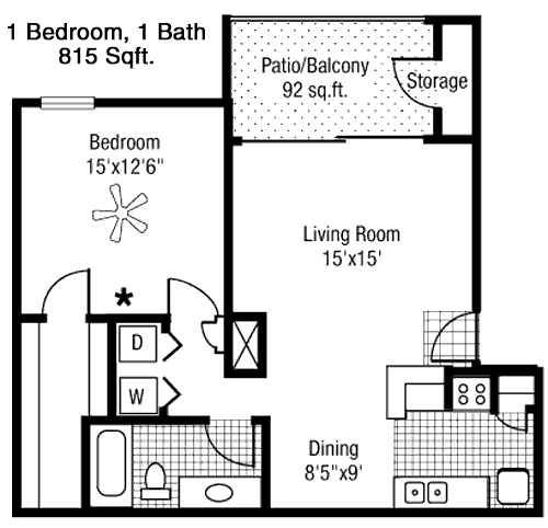 Floor Plan 1x1 - 814 Sqft
