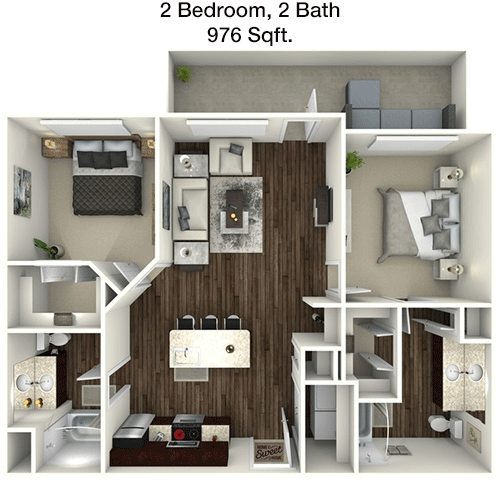 Floor Plan 2x2 - 1,016 Sqft