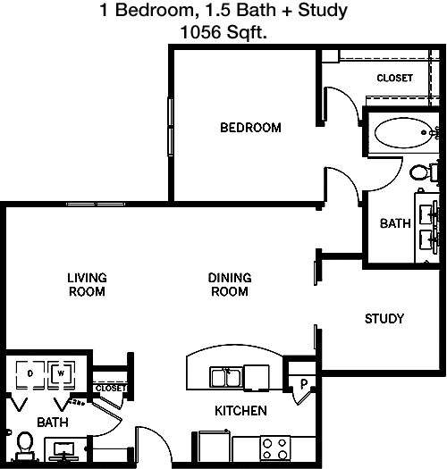Floor Plan 1x1.5 den - 908 Sqft