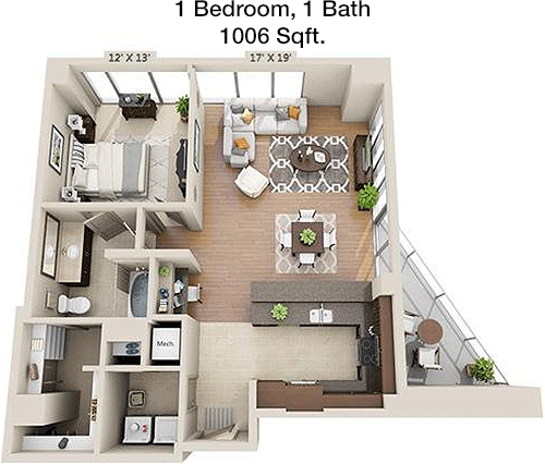 Floor Plan 1x1 - 1,289 Sqft