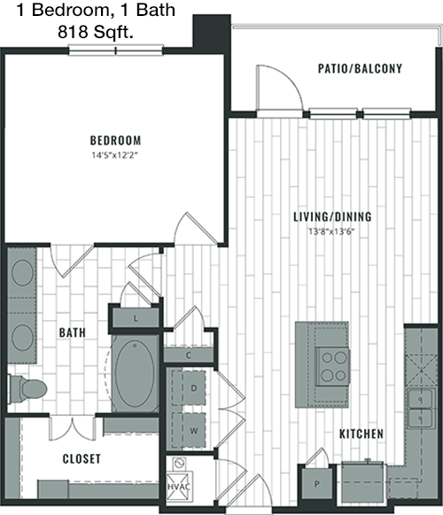 Floor Plan 1x1 - 797 Sqft