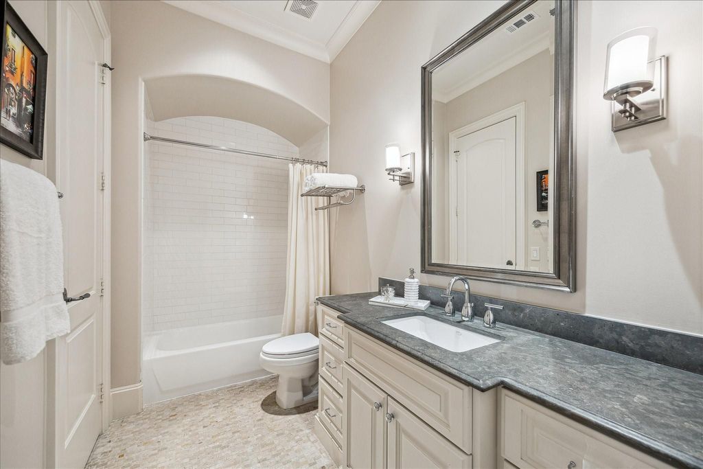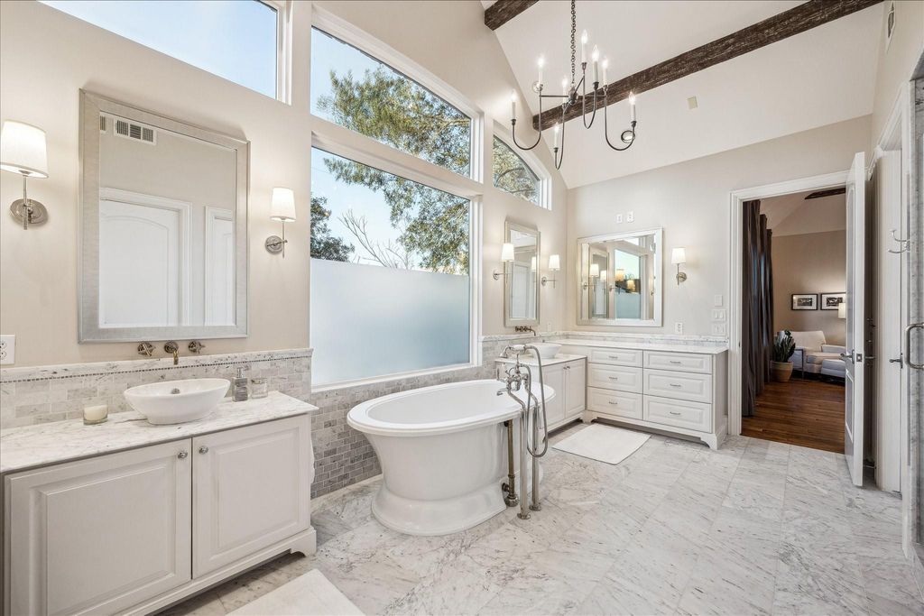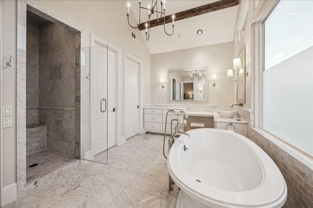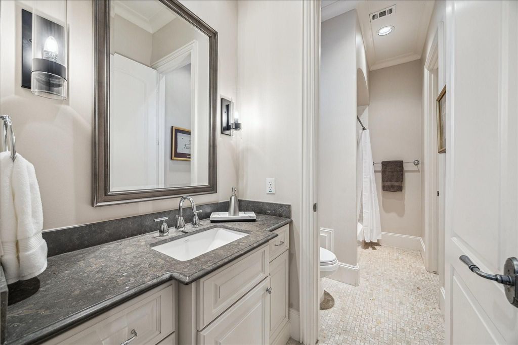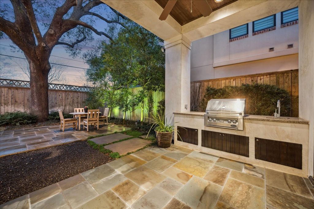 Ideally positioned just steps from Memorial Park, this distinguished Country French residence offers one of Houston’s most coveted settings for refined, active living. Enjoy immediate access to hike and bike trails, the renowned Memorial Park Golf Course, tennis and pickleball facilities, and expansive green space. The home blends timeless architecture with warm, inviting interiors. Wood floors, beamed ceilings, and curated finishes create understated elegance throughout. The chef’s kitchen and breakfast area open to gracious living spaces and a family room with a stone fireplace and walls of windows overlooking the private, pool-ready yard. A wine room and paneled study add character and function. Upstairs features a serene primary suite with a beautifully appointed bath, 3 additional bedrooms, and a spacious game room. Outdoor living includes a covered patio, summer kitchen, and mature landscaping beneath a magnificent live oak. Elevator-capable. Neighborhood security patrol.