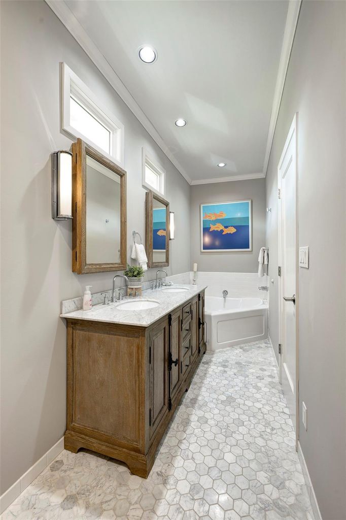 Imagine living in Southampton, minutes from award-winning dining and exceptional museums! This charming home accommodates all life stages as it offers a primary bedroom downstairs and upstairs, both with ensuite baths! The double front doors open to a tall cathedral ceiling with two stunning chandeliers highlighting the living room and dining room. Hardwood floors and a gas fireplace add a warmth to this light and bright home. The sleek kitchen with pass-through to the dining room makes entertaining a breeze! This inspired bungalow was expanded to include a second level with a primary bedroom, bath, den/gameroom and kitchenette. The entire second floor could be one large primary retreat! Further additions are the large laundry & mud room with storage and a powder room. Your family will love the pool, flagstone side-patio and outdoor grilling! The circle driveway allows for convenient parking! Make an appointment today and start your next chapter.