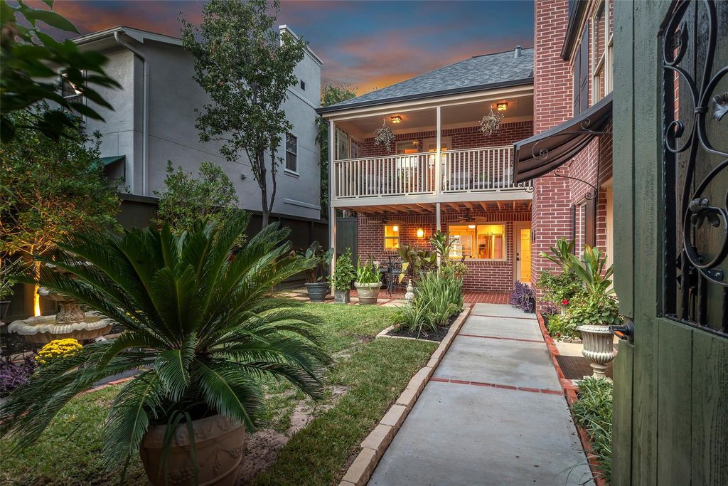 Beautiful Southampton red brick home that is centrally located near the Museum District, Rice University, Rice Village, Montrose, and the Medical Center. This 3-bedroom 2.5 bath home has a spacious eat in kitchen along with a huge family room with a gas log fireplace. All bedrooms are upstairs. Primary suite has a large area that can be utilized as a sitting room, an office or a gym. Currently this room is being used as a media room. Primary walks out to a private balcony that looks over the lush landscaping of the back yard. One of the secondary bedrooms also walks out to that balcony. Two secondary bedrooms share a jack and Jill bathroom. Utility room is upstairs and clothes washer and dryer convey with the property. The back and front yards have been landscaped to enhance the space and the home. This has new carpet 2025 and new composition shingles 2025. This home is zoned only to residential use. Electric Vehicle charging station stays with the home. Make your appointment today.