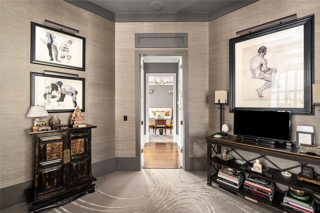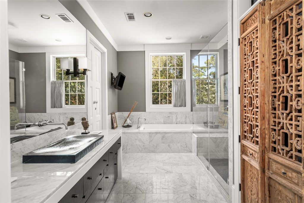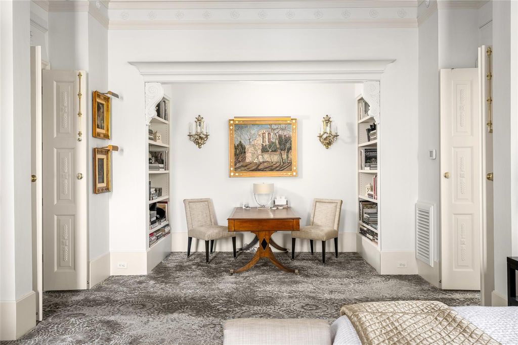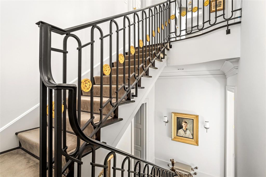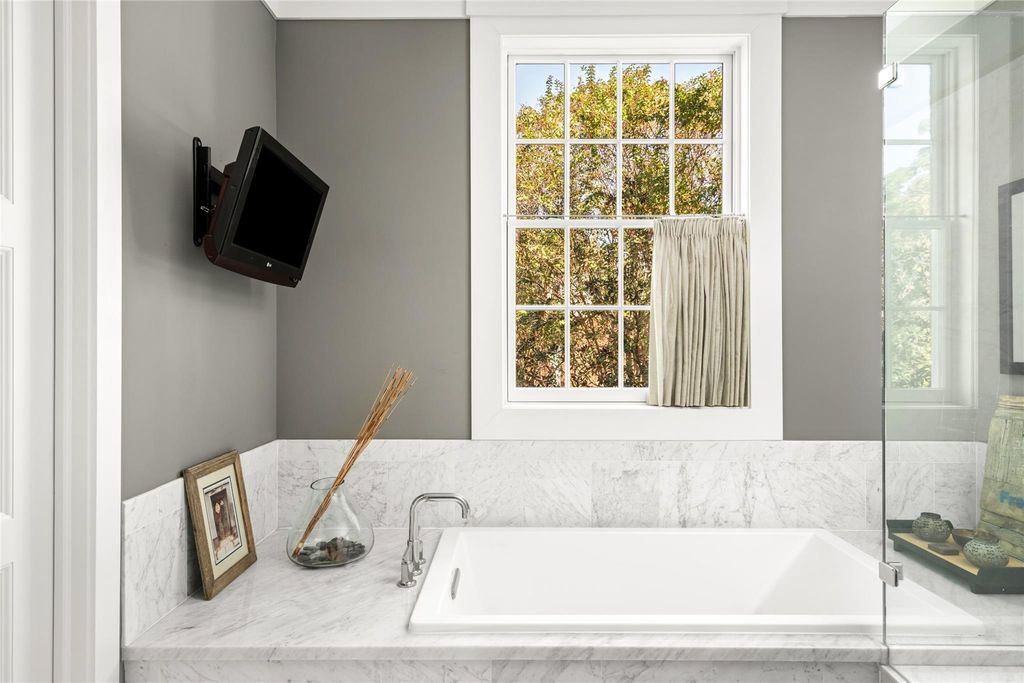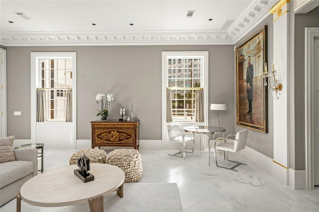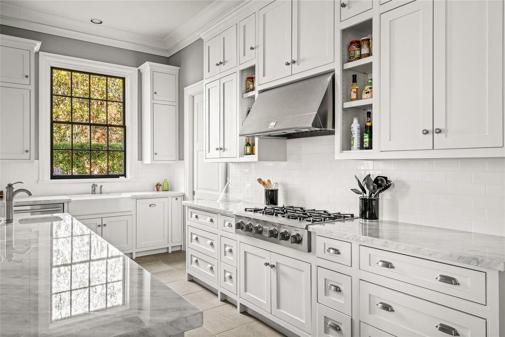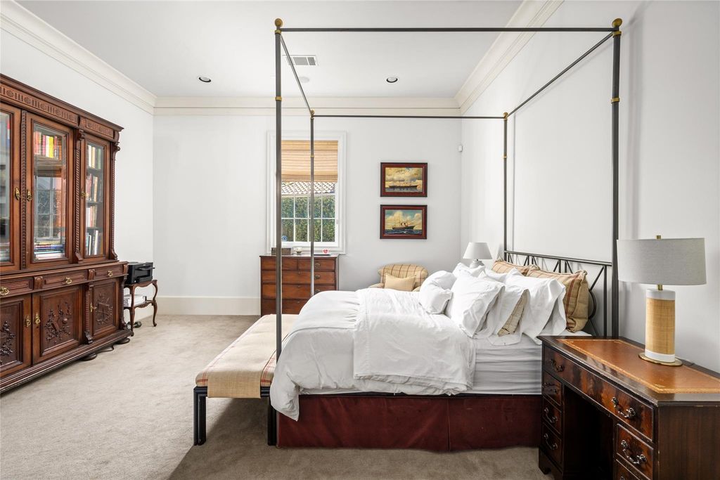 Timeless sophistication defines this Federal-style masterpiece by acclaimed New York architect Ike Kligerman Barkley, with interiors by renowned designer Michael Siller. Every space reflects refined craftsmanship and architectural elegance. The formal living room showcases decorative moulding, smoked mirror panels, and marble flooring. A chef’s kitchen anchors the home with a marble-topped island, breakfast/dining room, and nearby laundry. The primary suite offers a serene retreat with reading alcove, custom carpeting by Hokanson, spa-like marble bath, dual closets, and private sitting room or office. The second-floor living room opens to a luminous sunroom framed by oversized windows overlooking manicured gardens. A secondary ensuite bedroom and main-level guest suite add comfort. Outdoors, landscaped gardens surround a charming dining patio. Elevator, generator, three-car garage, and gated drive complete this exceptional residence.