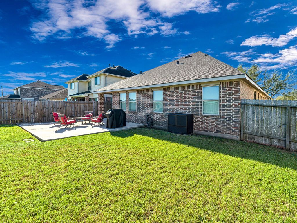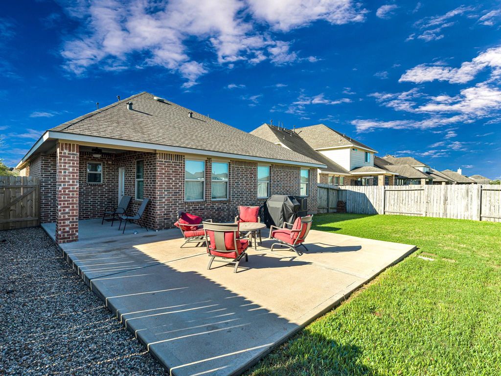 TWO YEAR OLD ROOF! Enjoy perfect functional design in this impressive stone & brick home! The elongated entryway features impressive space & high ceilings. Your versatile executive study w/ double French doors easily serves as a quiet home office/study, media room OR a 4th bedroom! The heart of the home is the expansive kitchen, designed for those who love the massive open concept. It features a large granite island w/ pendant lights & room for breakfast bar seating, plus the signature arch connecting the kitchen to the family room, maintaining that open concept living! Your large kitchen features recessed lighting & custom tile backsplash w/ quartz accents. The primary suite offers a quiet retreat w/ a large walk-in closet. Outside, the living space extends to a covered patio w/ ceiling fan & additional concrete pad, ideal for outdoor entertaining. Situated on a cul-de-sac street, this home offers both space & privacy w/ no back neighbors! Be Our Guest & Schedule your showing today!