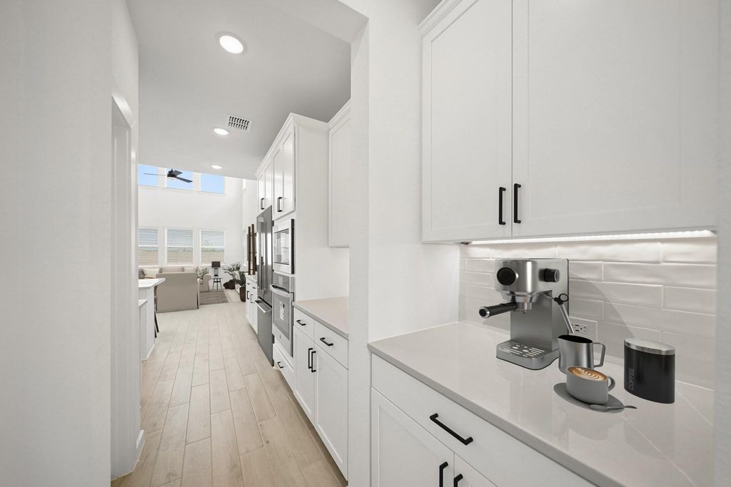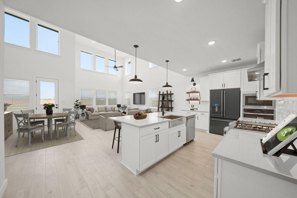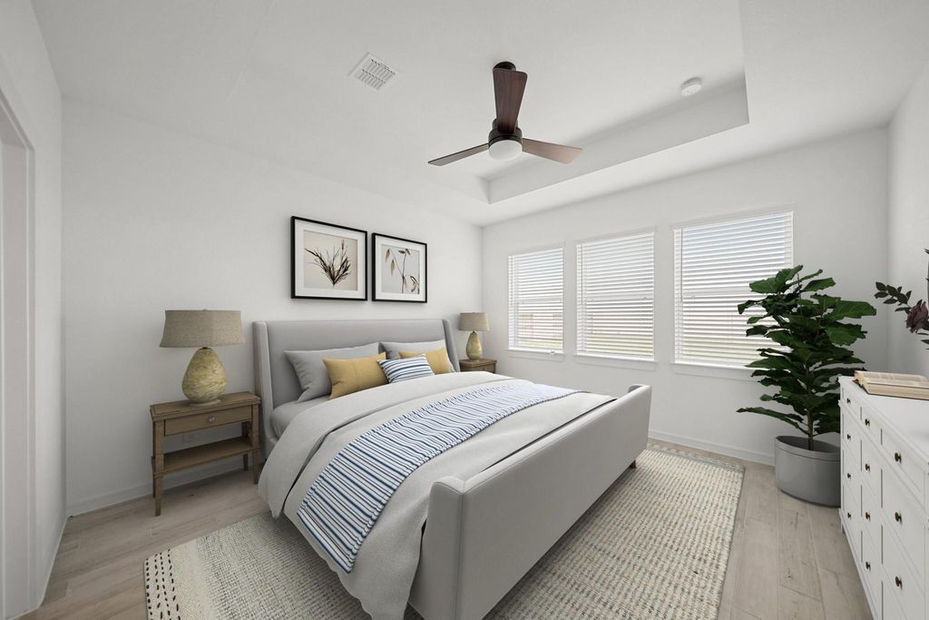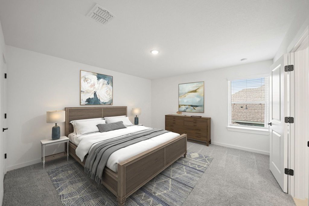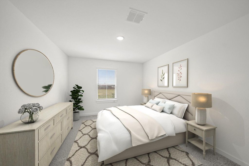 Discover Kingdom Heights, an amenity-rich community in Rosenberg, TX featuring K. Hovnanian's Looks - professionally curated interior designs. Discover this two-story El Paso home in our Farmhouse Look, featuring 4 bedrooms, 3.5 baths, and 2-car garage. An elegant dining room leads to a gourmet island kitchen, with white cabinets and quartz counters, via a convenient butler's pantry. The bright, open great room and dining area provide ample gathering space. The tranquil primary suite offers a huge walk-in closet and a spa-like bath with duals sinks and freestanding tub. This home also features a versatile loft upstairs and a cozy covered patio for outdoor relaxation. Located just off US-59 South and HWY 6, residents of this community enjoy easy access to shopping and dining, as well as Lamar Consolidated ISD schools. Resort-style amenities include scenic lakes, a swimming pool, hiking and biking trails, and a playground. Offered by: K. Hovnanian of Houston II, L.L.C