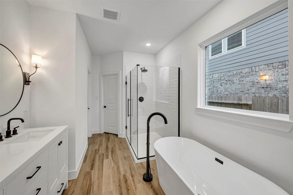 Discover Kingdom Heights, an amenity-rich community in Rosenberg, TX featuring K. Hovnanian's Looks - professionally curated interior designs. This stunning Farmhouse Look Davenport has 6 beds, 4.5 baths, and a 2-car garage! Walk into a welcoming foyer and find a convenient downstairs Extra Suite with its own full bath. You'll love the elegant dining room, and the kitchen is a showstopper with white cabinets, sparkling quartz counters, and floating shelves, open to the dining area and great room with vaulted ceilings throughout. Your primary suite boasts a large walk-in closet and spa-like bath with a barn door, tub, and dual sinks. There's also a loft upstairs and a relaxing covered patio. Located just off US-59 South & HWY 6, residents of this community enjoy easy access to shopping and dining. Zoned Lamar Consolidated ISD schools. Amenities include scenic lakes, a swimming pool, hiking and biking trails & playground. Offered by: K. Hovnanian of Houston II, L.L.C