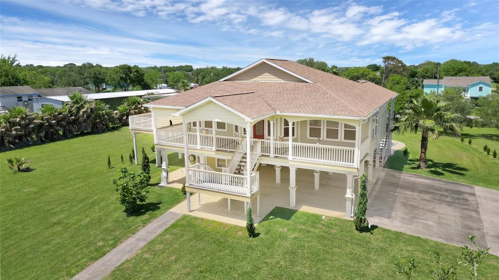 Exceptional Coastal Retreat on Over an Acre – Multi-Generational Floor Plan, Elevator, Fruit Orchard & Resort-Style Pool! This rare gem offers over 760 sq ft of covered deck and a whole home Generac! Ideally situated just blocks from the water & some of the area’s best dining. Built above the flood plain, this stunning home is located in the desirable peninsula area of San Leon, where gentle breezes make the expansive composite decks an everyday escape. The flexible floor plan includes a first-floor suite w/bedroom, full bath, kitchen, & office or additional living space. An elevator provides access to the 2nd floor which features the main living and dining areas, a beautiful kitchen, and a luxurious owner's suite with a sitting area & spa-style bath. Enjoy the outdoors with a resort-style pool, lush fruit orchard, and multiple covered and open-air spaces perfect for entertaining or relaxing. New carpet and paint! Fully fenced and gated!