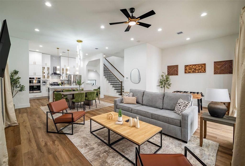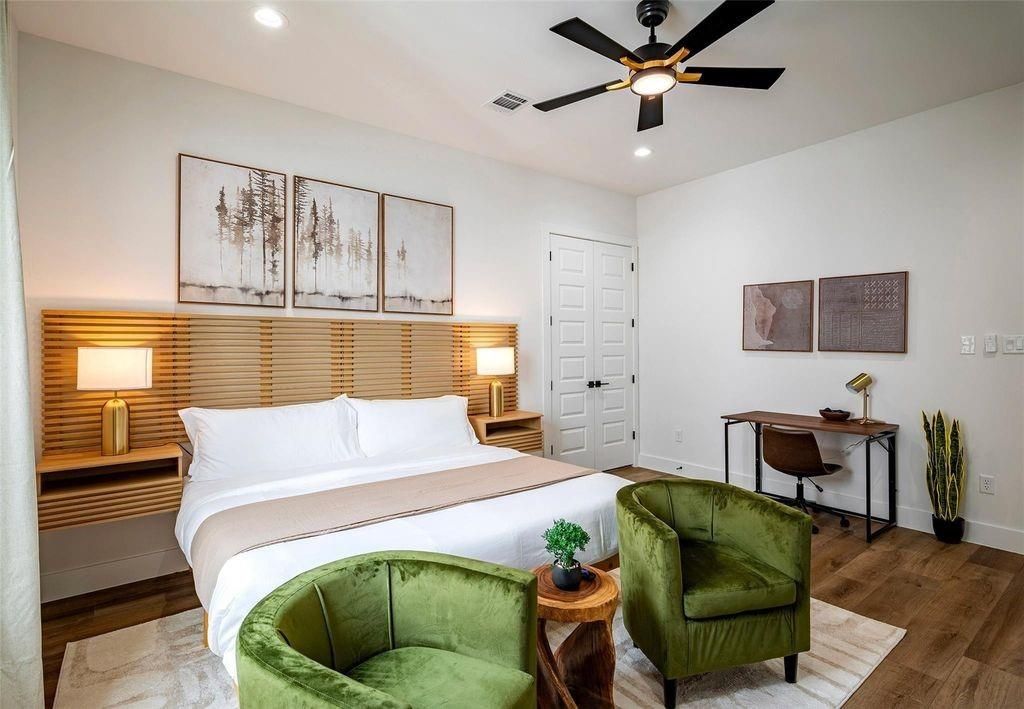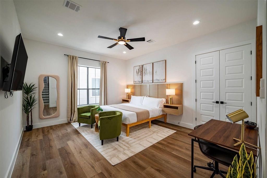 Experience urban living in this stunning three-story home with a private rooftop deck, designed for both comfort and convenience. This beautifully finished residence features three spacious bedrooms, each with its own ensuite bathroom, plus a half bath for guests. The open-concept living area flows seamlessly to a private balcony, perfect for relaxing mornings or evenings. Inside, enjoy engineered wood flooring, modern finishes, and a bright layout filled with natural light. The kitchen is fully equipped, and the home is offered furnished with the option to remove furniture if desired. A washer, dryer, and refrigerator are all included. Located in a gated community in the highly sought-after Heights area, you’re within walking distance to a farmers market and bakery, and just minutes from H-E-B, shopping, and dining. This home offers the perfect blend of style, comfort, and location.