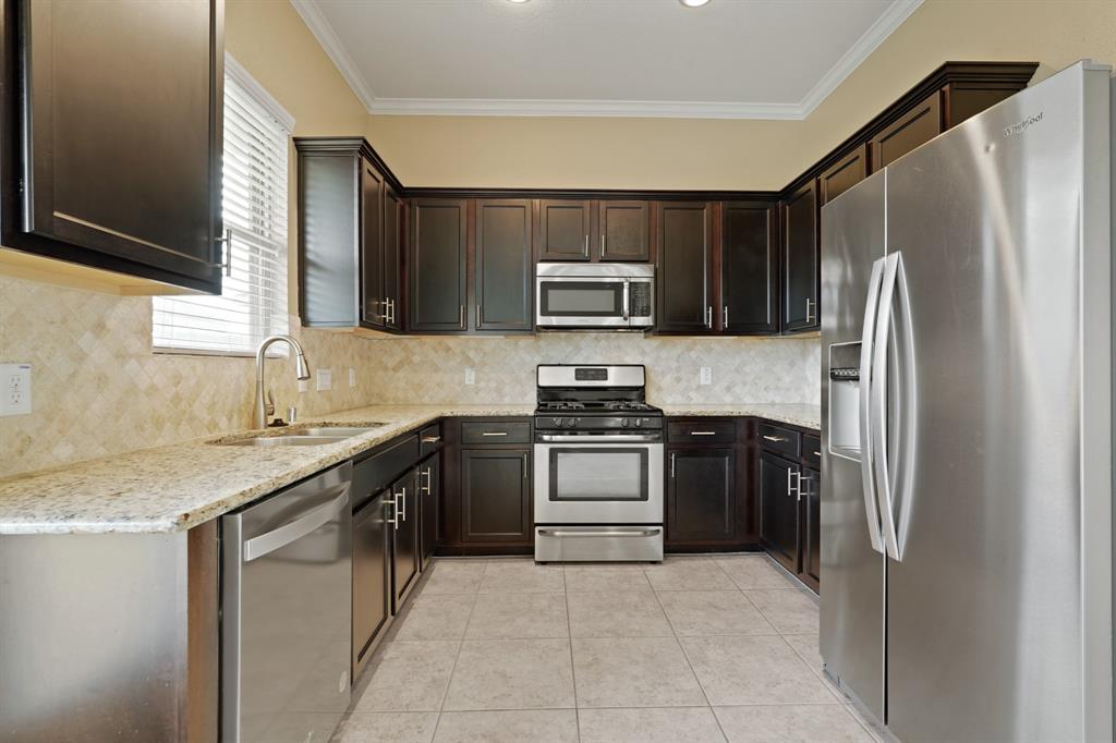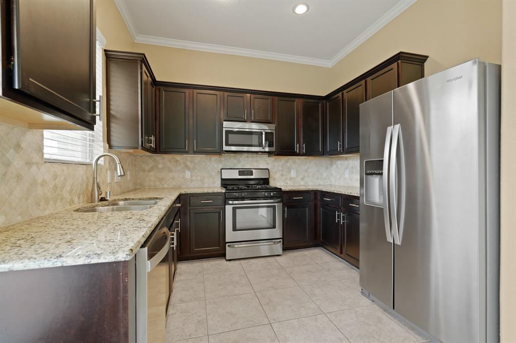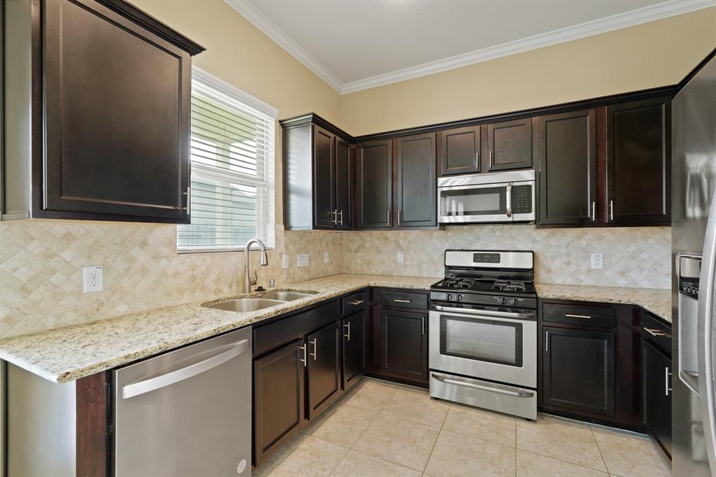 Lovely 4 bed/2.5 home in the desirable Brunswick Meadows; Medical Center South area. The fantastic open-concept floor plan offers a well-appointed dining space, flowing effortlessly to the spacious family room with soaring vaulted ceilings. Tile floors, crown molding & wonderful natural light carries throughout. A light & bright breakfast space sits adjacent to the Chef's kitchen, boasting elegant granite counters & modern stainless steel appliances including side-by-side fridge. The first floor Primary Suite offers a spa-like en-suite bath with dual sinks, a garden tub plus separate shower & huge walk-in closet. Upstairs discover a flexible game room, plus 3 additional bedrooms with a full bathroom for sharing. A cute covered front porch, balcony, & covered back patio overlooking a fenced backyard offers ample space to enjoy the outdoors. Additional perks include a half bath, central laundry room with washer & dryer included, & 2-car garage with auto opener.