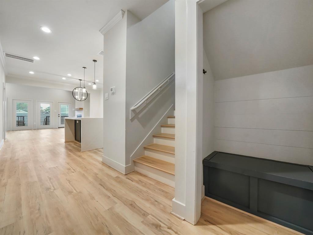 Welcome to your dream home in Independence Heights! Recently built, this home offers a perfect blend of modern amenities & classic charm. Entrance features privacy gate leading to covered porch. Inside you will find a spacious open layout floorplan w/vaulted ceilings in the living room, storage nook, convenient office nook & luxury vinyl plank flooring throughout. Large windows provide abundant natural light & offer views of the covered back porch & green space. Enjoy cozy evenings by the stunning fireplace w/mantle & custom built-in cabinetry. The kitchen is a chef's dream, featuring a waterfall island, SS appliances & vent hood over the gas range. All bedrooms are upstairs. The primary bedroom w/ensuite bathroom boasts dual vanity sinks & oversized walk-in shower. Centrally located, this home provides easy access to major freeways, grocery stores, dining, and shopping centers. Don't miss out on the opportunity to make this luxurious retreat your new home! Schedule a viewing today.
