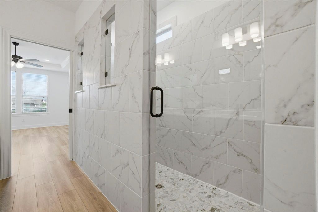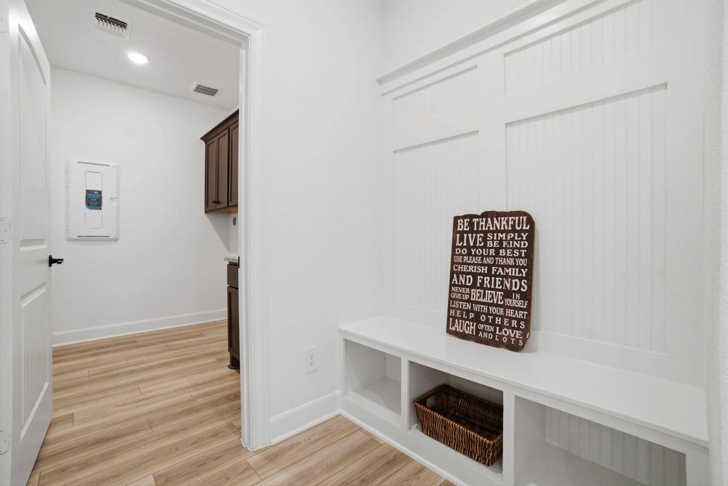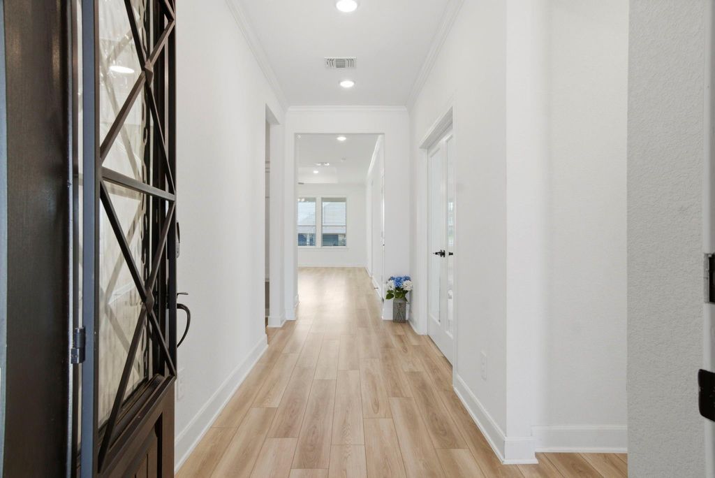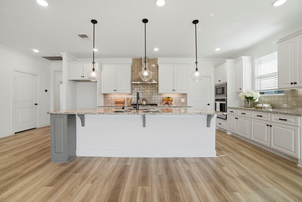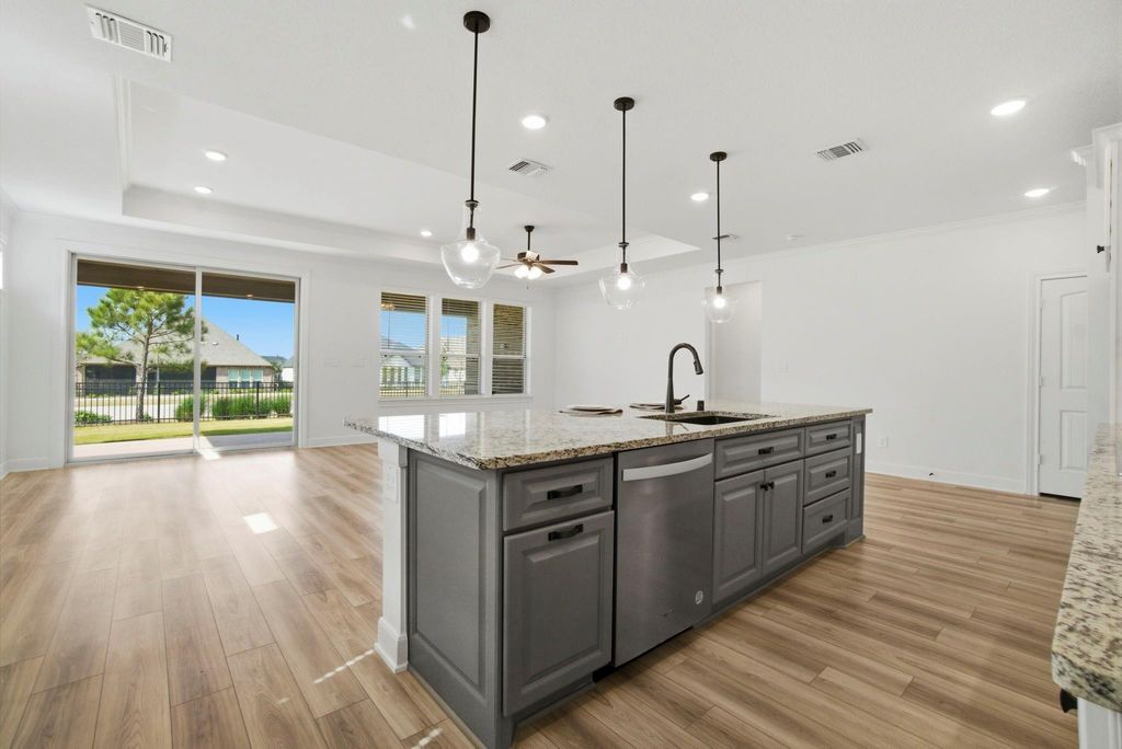 Nestled in the premier 55+ gated community of Chambers Creek. Beautifully designed one-story home perfect for those ready to downsize without sacrificing comfort or style. Generator included! Bright, open-concept layout with high ceilings & durable luxury vinyl plank flooring. Kitchen features large island, gas cook top, dble ovens, soft-close cabinetry, walk-in pantry—ideal for entertaining or quiet evenings at home. Primary suite offers spa-like bath with oversized walk-in shower, dual vanities, spacious closet. Guest bedroom and dedicated study provide flexibility for visitors or hobbies. Enjoy morning coffee or evening wine on the front porch or covered patio with no neighbors directly in front or behind for added privacy. Low-maintenance, lock-and-leave living with lawn care included. Resort-style amenities include pickleball, walking trails, pool, fitness center, dining, social events—designed for connection and active lifestyle. Golf access offered through optional membership.