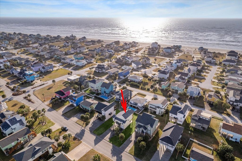 PIRATES BEACH! 3BR/2BA just 3 blocks from the beach. Bamboo flooring throughout, coastal décor, Gulf views from upper deck. High-impact storm windows + electric storm shutters on all openings. Ground level ideal for entertaining. Convenient West End location near Schlitterbahn and Moody Gardens. Perfect as primary home, second home, or vacation rental. Move-in ready! Room for a pool. All info per Seller.