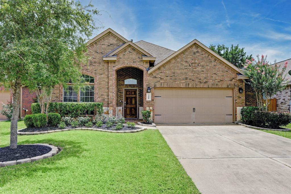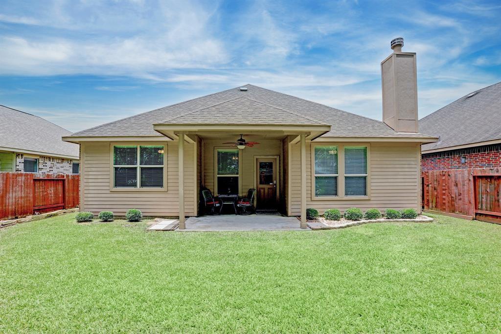 Welcome to this well-maintained home with an open floor plan and no back neighbors. The house has high ceilings throughout, private study, skylight over the island kitchen which is open into the dining and living rooms and a walk-in pantry. The living room has a white stone gas fireplace with a cedar mantle, wood plank tile in all of the living areas and carpet in the bedrooms. The primary bedroom suite is spacious with the restroom having double sinks, soaking bathtub and a separate shower.