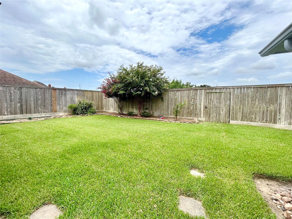 Situated in the desirable Green Tee Terrace subdivision, this gorgeous custom Perry Home is sure to please. An executive floor plan that features modern selections and neutral colors. This home includes 4 spacious bedrooms, 2 full baths, walk-in closets, and a spacious utility room, complete with your very own library featuring beautiful built-ins and cabinets. Inside you'll find raised mansard ceilings, crown molding, double sinks in the secondary bathroom, and a Whirlpool tub with a separate shower, double sinks, and a vanity in the primary suite. Many recent updates include gutter guards, ductwork, AC units, a widened driveway for extra parking room, plumbing, flooring, and more. Step into this beautiful kitchen that features a newly custom island (2025), countertops, and backsplash (2024), waterproof LVP flooring (2025). Lush landscaping adds beautiful curb appeal. A very well-maintained home with no back neighbors! Bring your golf clubs and don't miss!