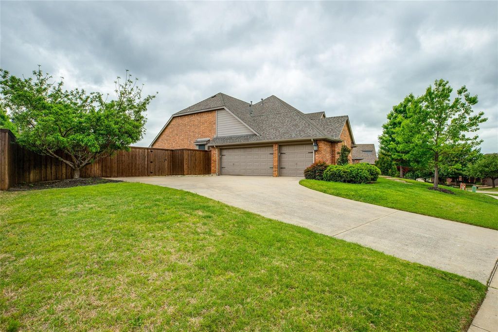 Updated Willow Ridge home in Prosper ISD with 4 beds, 3.1 baths, and a 3-car garage with epoxy floors. Features include a beautiful iron front door, hardwood floors, designer lighting, designer tile, and an open layout with soaring ceilings and abundant natural light. Spacious living area with a stone fireplace flows into the kitchen with granite countertops, stainless steel appliances, and a large island. First-floor primary suite with remodeled spa-like bath. Dedicated office with built-ins and wine bar. Upstairs media room and generously sized secondary bedrooms. Large backyard with covered patio. Prime location near The Gates of Prosper and the Dallas North Tollway with access to community pool, parks, and trails. So much more to see in this move-in ready home.