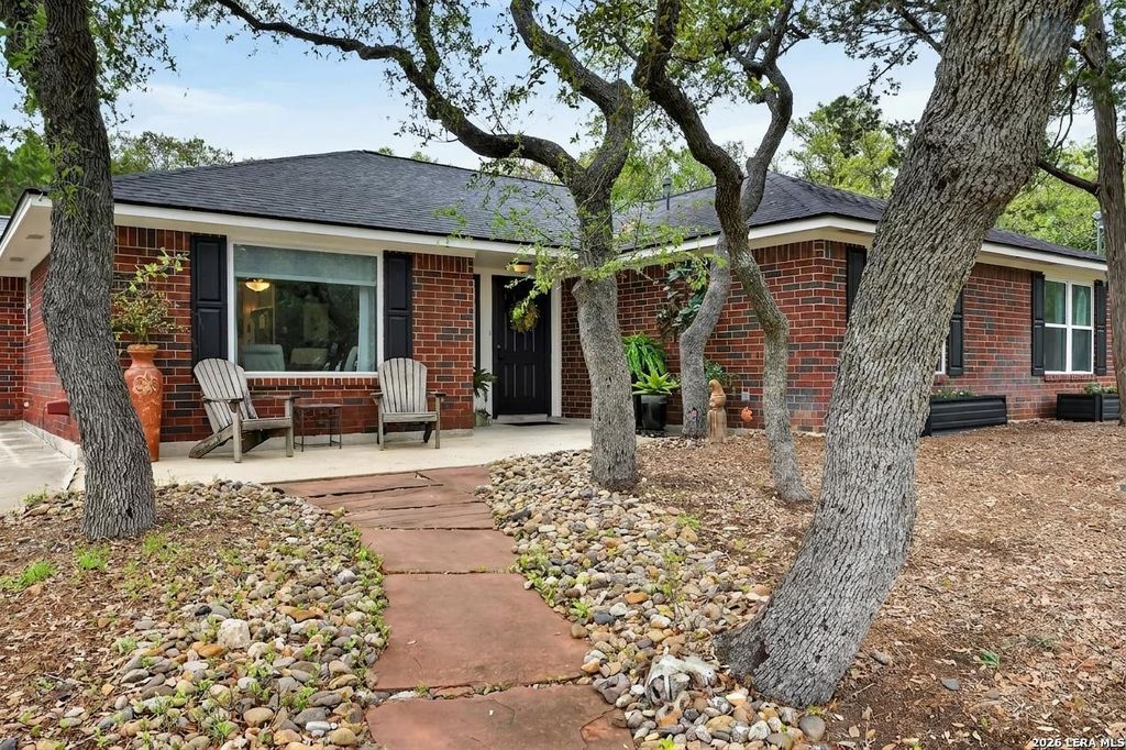 Versatility and thoughtful design define this home, ideally situated on a cul-de-sac street where limited traffic create a more peaceful setting. The living room serves as a warm centerpiece with vaulted ceilings, exposed beams, and abundant natural light, creating an inviting space to gather and unwind. The modern kitchen continues the flow with floor-to-ceiling cabinetry, pull-out drawers, and updated appliances, opening seamlessly to both a formal dining room for special gatherings and a bright breakfast nook for everyday meals. There is a wonderful floor plug also available for use at the stainless steel island. A dedicated office with large windows offers a bright place to work or create and can easily serve as a fourth bedroom if needed, while the spacious primary suite-currently used as a hobby room-highlights the flexibility to serve as a private retreat or creative space. Secondary bedrooms are comfortably sized and filled with natural light, and both bathrooms have been beau