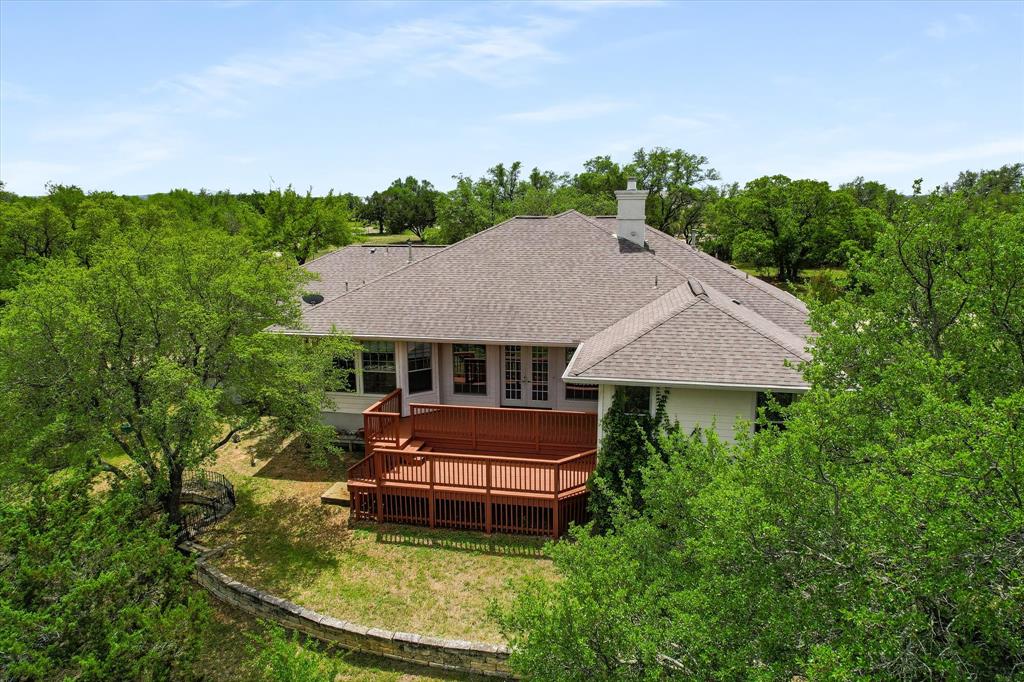 Nestled on a scenic 2.22-acre corner lot in the highly sought after Travis Settlement community, this custom 2905 sqft 3 bedroom, 2.5 bath home offers the perfect blend of privacy, comfort & Hill Country charm. Surrounded by mature trees & breathtaking panoramic views, this property will entice you & your family to escape & relax as you will be submerged in the natural beauty of all that Spicewood has to offer. Stepping inside, you’ll find a thoughtfully designed layout with an abundance of natural light, elegant crown molding, plantation shutters, & tray ceilings throughout. The gourmet kitchen is a stand-out, complete with a breakfast bar, a sunny breakfast area, stone backsplash, stainless steel appliances & ample cabinetry that’s ideal for both everyday living & entertaining. The primary suite is a true retreat, featuring a spa-like bath with double vanities, a soaking tub, an oversized walk-in shower & an impressive walk-in closet. Perfect for large gatherings, this stunning home features a dedicated dining room & a private office offering flexibility for work or a variety of other uses. Step outside to the expansive two-level deck, the perfect place for enjoying a peaceful coffee in the mornings or hosting friends & family with a glass of wine, while taking in the sweeping Hill Country views. Residents of Travis Settlement enjoy private lake access to Lake Travis through the community's Lakeside Park perfect for kayaking, paddleboarding or simply watching the sunset over the water. This is a unique & rare opportunity to enjoy the true Lake Travis/Spicewood lifestyle. All of this within Lake Travis ISD, which is one of Texas's top-rated school districts & just minutes from the Hill Country Galleria, Lakeway, Bee Cave & Austin. Take advantage of the Lake Travis marinas, parks, wineries & greenbelt trails. With its serene environment, tree filled acreage, privacy & stunning surroundings, this home is a Must See and an extraordinary opportunity.
