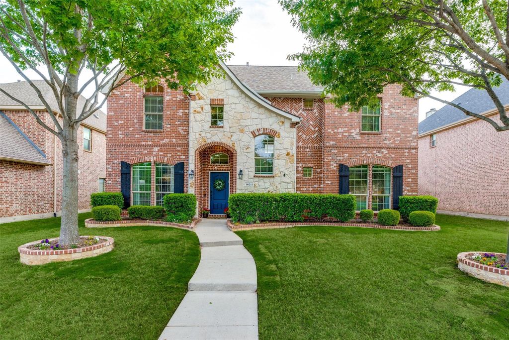 Located in the Villages At Willow Bay community, believed by many to sit on blessed land and zoned for the highly rated A-ranked Frisco ISD schools, this home offers a highly desired floor plan thoughtfully geared toward multi-generational living while maintaining ideal functionality for everyday living and entertaining. The primary suite is conveniently located downstairs and features a luxurious oversized bathroom with abundant counter space, soaking tub, and separate shower creating a spa-like retreat. A second bedroom on the first floor is positioned near a full bathroom, offering excellent flexibility for guests or multigenerational living similar to an in-law suite arrangement. Upstairs you will find three additional bedrooms and two full bathrooms providing ample space for a variety of needs. The home also features a dedicated media room equipped with projector, screen, and surround sound speakers that convey with the home, creating the perfect environment for movie nights or game days. An oversized private office includes impressive floor to ceiling built-in library style bookshelves ideal for working from home or displaying collections. The north-facing front door is a feature many buyers seek for balanced natural light throughout the day. Residents enjoy access to a community pool and playground, enhancing the lifestyle this neighborhood offers. Don’t miss this rare opportunity to live in the heart of Frisco in a home that offers an elevated quality of life.