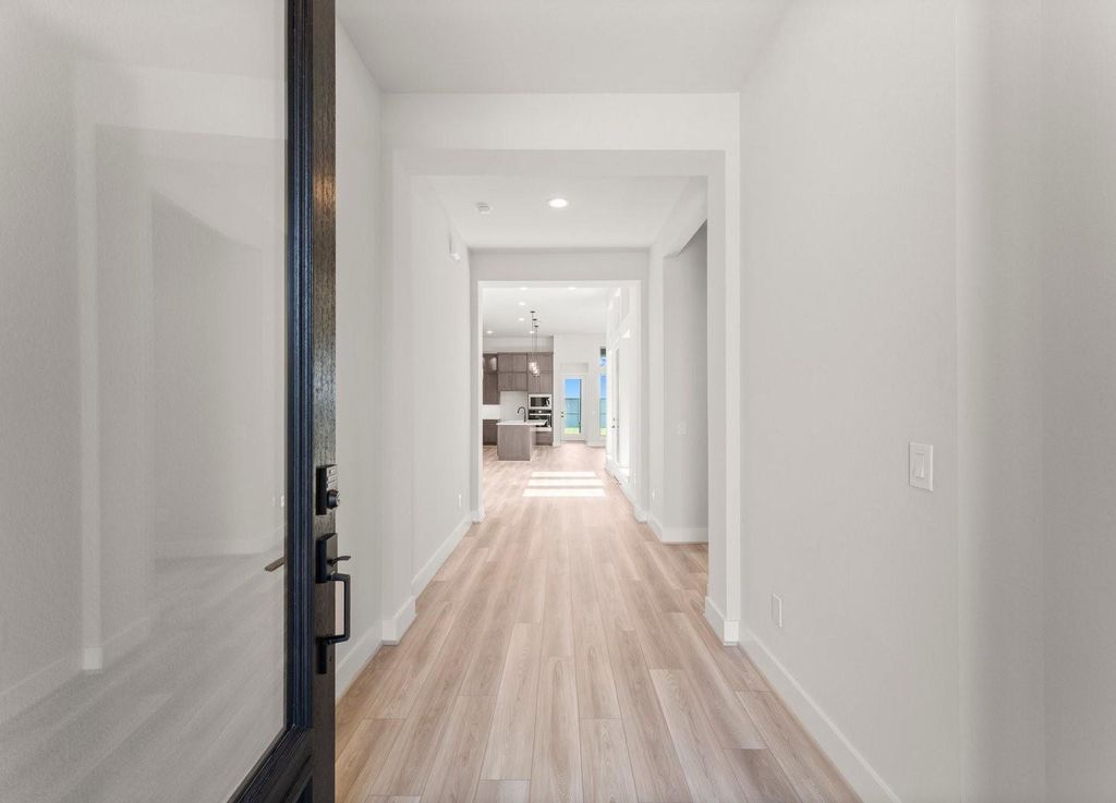 The Durango Features an Abundance of Natural Light with Wall of Windows at the Family Room Along with a Gas-Log Fireplace, Floor Outlet and Pre-wired for 16G, 5.1 Surround Sound at the Family Room. Island Kitchen with Stacked Cabinets, Gas Cooktop, Under-Cabinet Lighting, and Walk-in Pantry. 2 Outdoor Living Areas. Primary Bedroom with Walk-in Closet. Primary Bath with Skylight, Double Sinks, Built-in Vanity, Freestanding Tub, and Separate Shower with Seat. Waterproof, Luxury Vinyl Plank Flooring at the Entry, Dining, Family Room, Kitchen, Primary Bedroom, and Hallways. Utility Room with Additional Storage Cabinets and Folding Counter. Full Sprinklers. Wi-Fi Enabled, Built-in Home Intelligence System with Smart Thermostat, Lighting Control, and Smart Entry Door Lock. 14 Seer Trane A/C. Zip System Sheathing.