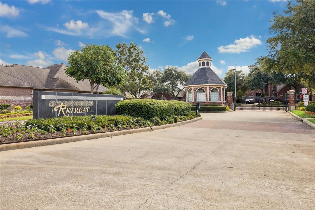 CHARMING ONE-STORY HOME WITHIN THE GATED "Retreat" section of the highly desirable Parkway Villages! SUPERIOR INTERIOR lot location paired with a wonderful floorplan make this one very special home. Stately design featuring 2-bedrooms/2 baths + study option w/pocket doors, formal dining, breakfast rm, enormous laundry room + sink, great island kitchen, covered porch & 2-car attached garage w/storage. You will marvel over the expansive island kitchen, dark stained cabinetry, pantry & work station. High ceilings, window treatments, crown mouldings & wood flooring in main living areas add great character to this lovely home. Recent HVAC approx 2023. Covered patio leads you to the outdoor living space & fully fenced backyard. Extended walkway & irrigation system. The Retreat offers a serene setting with close proximity to an array of dining options, grocery stores, Energy Corridor & shops. Absolutely delightful, well-cared home and all under one single story!