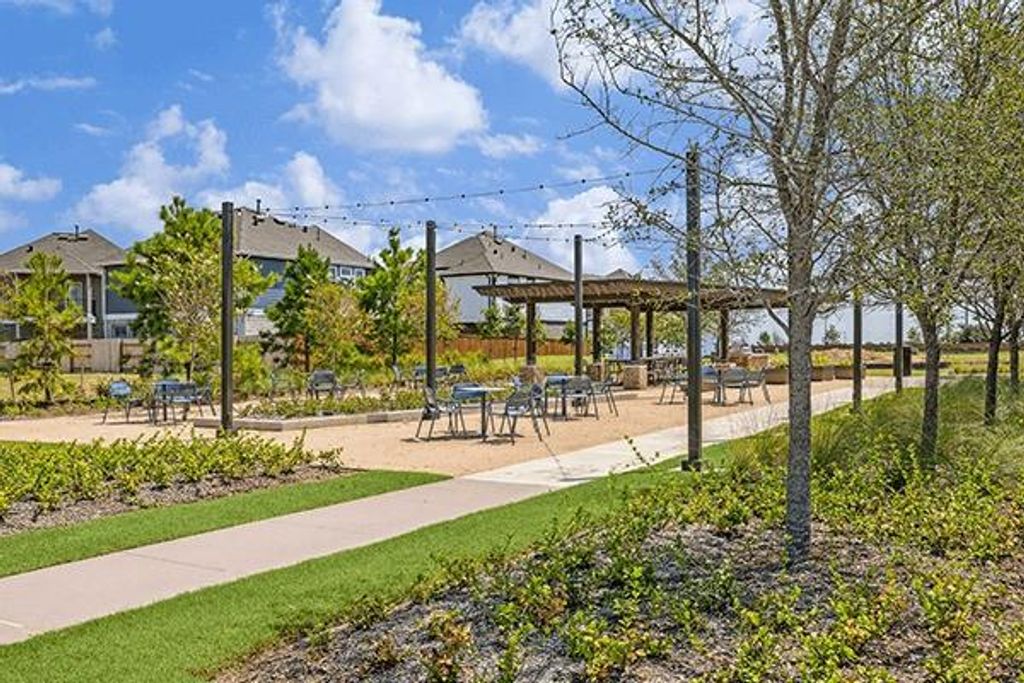 Experience elevated living in this beautifully upgraded home designed for comfort, style, and functionality. Soaring ceilings, 8-foot doors, upgraded LVP flooring, and a carpet-free first floor create a clean, modern feel throughout. The open layout is anchored by a gourmet kitchen featuring 36" GE Profile gas appliances, custom cabinetry, designer lighting, and a spacious island, all flowing seamlessly into the Great Room with a sleek fireplace. Enjoy true indoor-outdoor living with 12x8 sliding glass doors leading to a covered patio with motorized privacy screens and a gas line, perfect for entertaining. Thoughtful upgrades include motorized shades, wide slat blinds, spray foam insulation, water softener, alkaline filtration system, security cameras, and exterior lighting. North-facing entry and a light-filled Primary Suite enhance daily living. Located in Elyson with top-rated Katy ISD and resort-style amenities. Ask about opportunities to lower your monthly payment.