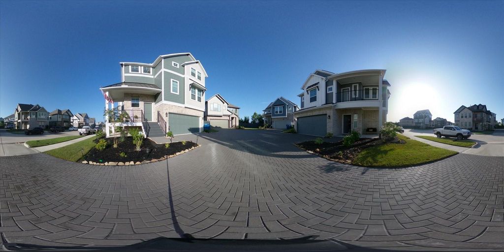 Welcome to The Courtyard Series by Chesmar Homes in Bridgeland, zoned to Cy-Fair ISD. This 2-story home on a corner lot features 3 bedrooms, 2 bathrooms, and a 2-car attached garage. The main living areas are located on the second floor, including the family room, kitchen, primary bedroom, and utility room. The open-concept layout offers a family room with access to a spacious balcony. The kitchen includes 42” cabinets, quartz countertops, a large island with pendant lighting, tile flooring, and stainless steel appliances. Refrigerator, washer, and dryer are included. The primary suite features dual sinks, an oversized shower, and a walk-in closet. Secondary bedrooms & a flex space provide options for a study or game room. Additional features include a covered patio, fireplace, blinds, security system, sprinkler system, full gutters, solar panels and a generator. Community amenities include pools, parks, walking/biking trails, lakes, tennis courts, fitness center, & dog park.