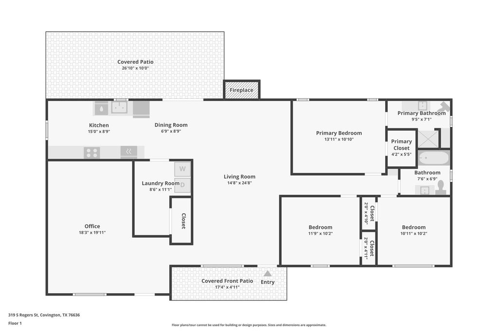 3-bedroom 2-bath home located in Covington, TX, a small Hill County community offering a quiet, rural feel with convenient access to 171 or 35W. The main living area features a wood-burning fireplace. Laminate floors throughout the home. The converted garage provides a large additional living space suitable for a second living area, game room, or office. Situated on a large lot in town. Also includes a workshop and a storage building with a carport. Solar panels will be paid off at closing.