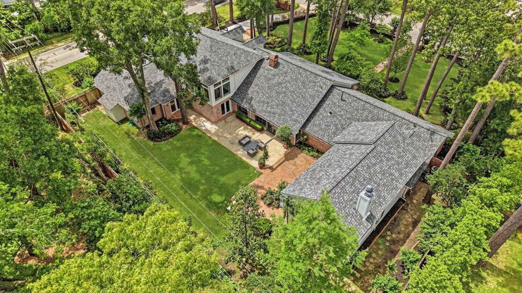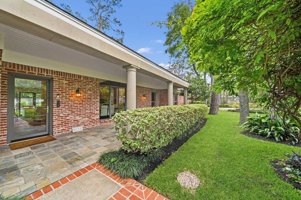 Set on one of the most exceptional lots in Hunters Creek Village, this architecturally reimagined home blends privacy, design, and modern livability. Positioned on a prominent corner at the entrance to Tara Oaks, it is surrounded by mature pines, oaks, magnolias, and seasonal blooms. Offered for only the second time since 1969, the home has been thoughtfully enhanced over 23 years, creating a warm, functional living environment. The backyard is a private retreat with treetop views, fountain, and lush landscaping, with room for a future pool. Elevated on Flint River Drive for excellent drainage, the home was reimagined by architect Bjørn Sefeldt with high ceilings, abundant light, and a flexible floorplan. Main living spaces open seamlessly to outdoor areas, ideal for entertaining. Distinctive features include a reclaimed brick fireplace, custom kitchen finishes, 2023 cabinetry updates, new roof (2026), updated windows (2025), and energy-efficient improvements.