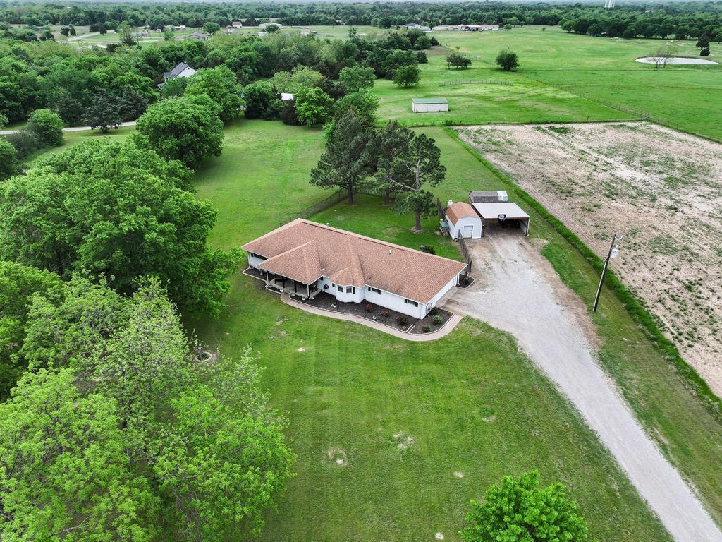 Situated on 5 acres, this meticulously maintained 3-bedroom, 2-bath home with a 2-car garage and dedicated office offers a functional open-concept layout. The eat-in kitchen features a large island with quartz countertops, propane range, stainless steel appliances, and seamless flow into the main living area. The private primary suite includes dual sinks, a walk-in shower, and a built-in closet. Each additional bedroom offers a walk-in closet. Outdoors, enjoy a fenced backyard, an additional carport and a stocked one-acre pond with bass, catfish, crappie, bluegill, and perch. Located in Caddo Basin Water District