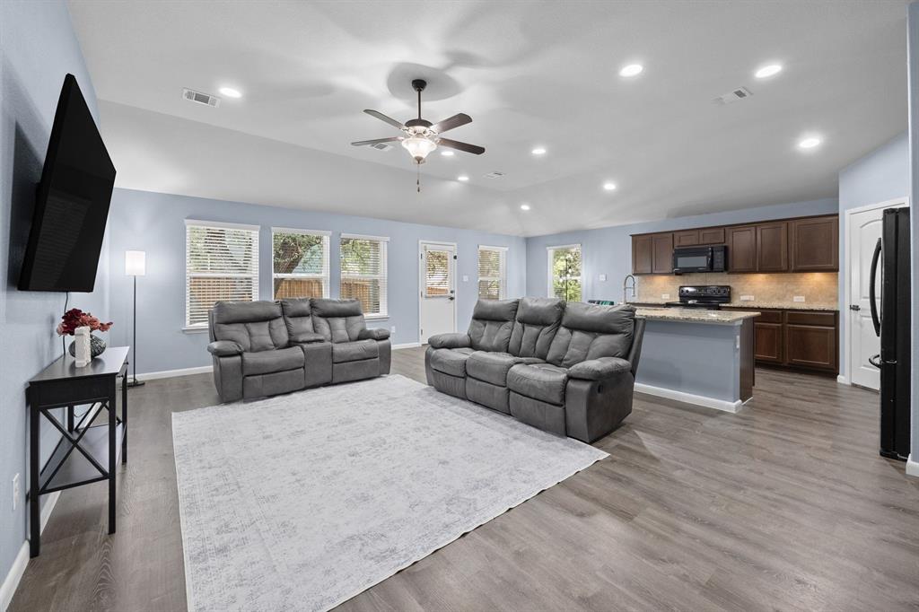 If you've been looking for a home in Lago Vista that's actually turn-key, this is it. At 1,554 square feet with 3 bedrooms and 2 bathrooms on a .21 acre corner lot, it's got a great setup — open layout, spacious living room, and a backyard full of beautiful trees that make it feel like you're tucked away even though you're right in the neighborhood. Built in 2017 and sitting at the end of a cul-de-sac, the currently empty lot next door is a nice bonus too. The sellers have done a great job keeping up with maintenance. New fence in 2021, paint in 2021, updated fixtures in 2024, new dishwasher in 2023, new microwave and range recently added. Both the kitchen fridge and the garage fridge stay with the house. The Lago Vista POA is one of the better ones — fitness center, pool, sports courts, marina, boat ramps, trails, campground, and more. The workout and activity center is an easy walk from this street.
