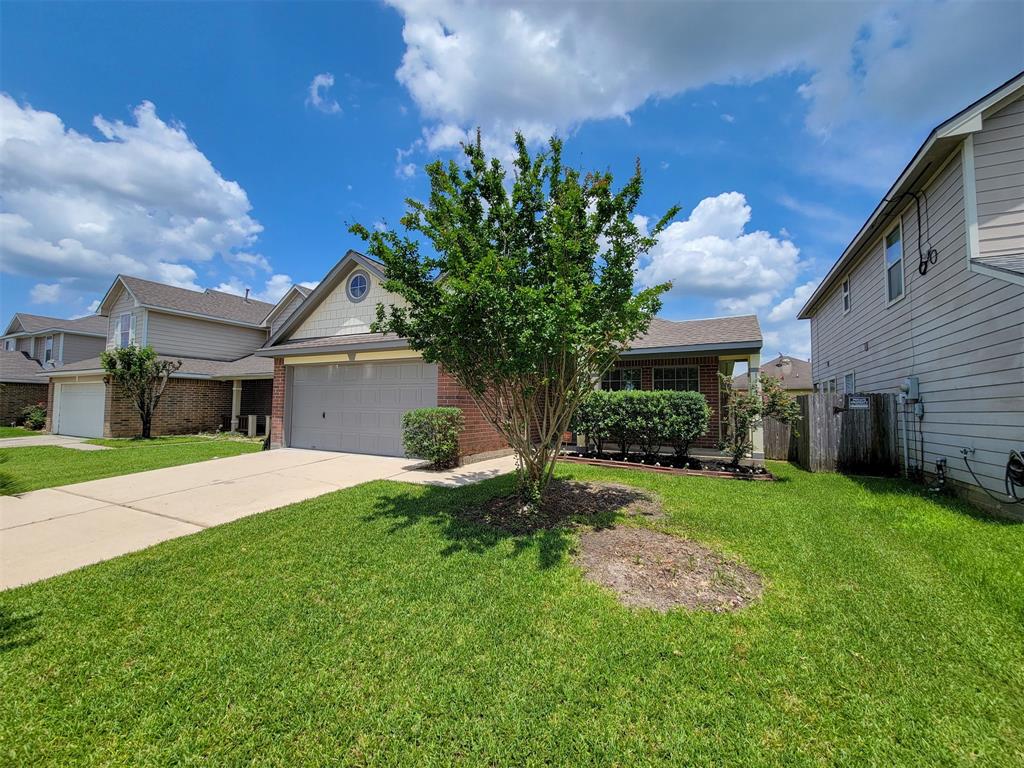 Welcoming charm with a cute front porch greet you as you enter this nicely maintained home. Among the updates you'll find are easy to maintain wood look tile throughout, baseboards, case moulding, doors, ceiling fans in all bedrooms and living room, neutral interior paint, LED lighting, Nest smoke detectors, exterior paint, garage door opener, garbage disposal, water heater, HVAC and furnace in 2018, roof in 2016. Room sizes approximate; buyer to verify. Community pool/recreation area for your enjoyment. Easy access to 249 and 99.