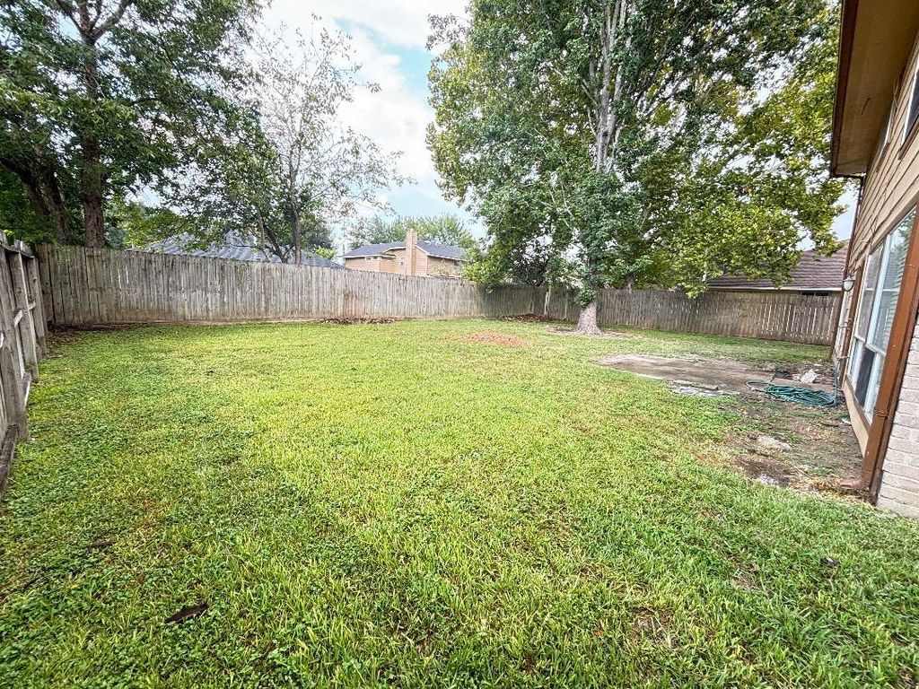 Large and update house with high ceiling with 4 bedrooms, 2.5 bath, and 2 car garages attached. Spacious floor plan with huge backyard. New interior paints, update new wood floor (no carpet), new appliances, washer/gas dryer and refrigerator included, new baths, family room with fireplace and bar overlooking the back yard and kitchen. Zoned great to Fort Bend ISD, central location close to shopping, stores and major streets.