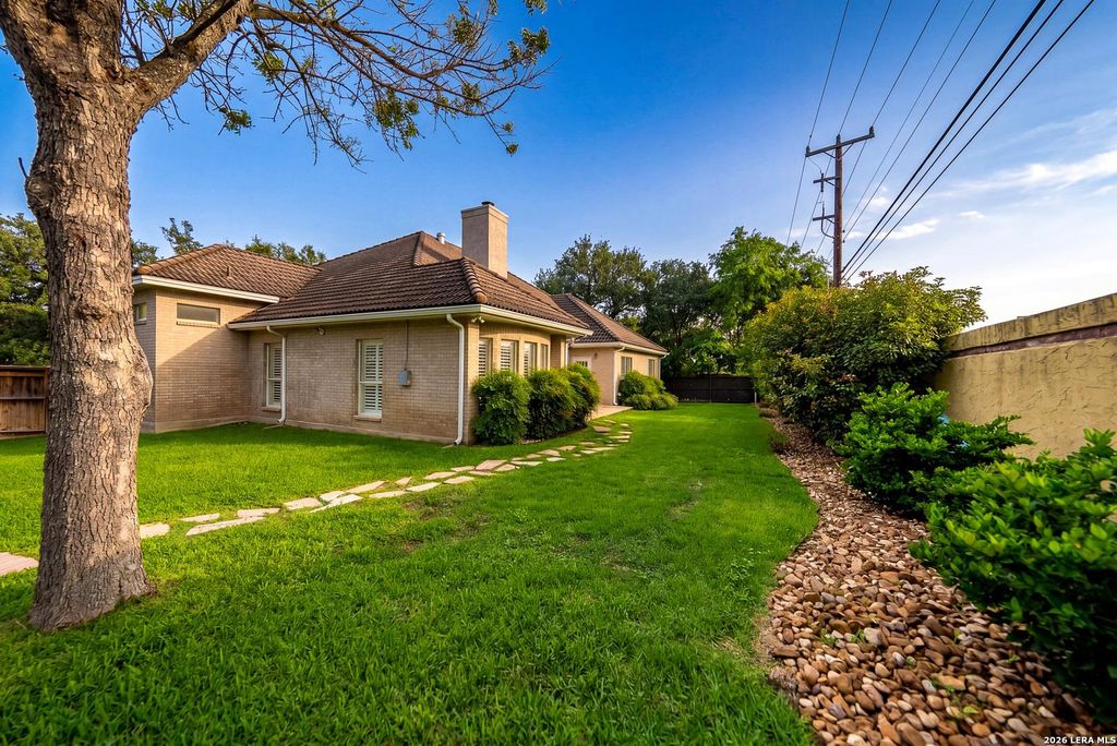 Tucked behind the guarded gates of the coveted Sonterra community, 19207 Tierra Cove is a masterfully reimagined residence where effortless luxury meets everyday convenience. Fully furnished and impeccably curated, this turnkey home offers a rare opportunity to step into a refined lifestyle from the moment you arrive. Every inch of the interior has been thoughtfully renovated to reflect a warm, elevated aesthetic-where rich new wood flooring flows seamlessly beneath designer lighting, and bespoke finishes create a sense of understated sophistication. The heart of the home is both striking and inviting, anchored by a beautifully detailed fireplace with decorative brick accents and a statement kitchen designed to impress. Outfitted with premium JennAir appliances-including a cooktop, wall oven, microwave, and dishwasher-the space is complemented by gleaming quartz countertops, a farmhouse apron sink, and refined hardware that elevates both form and function. Retreat to the primary suite