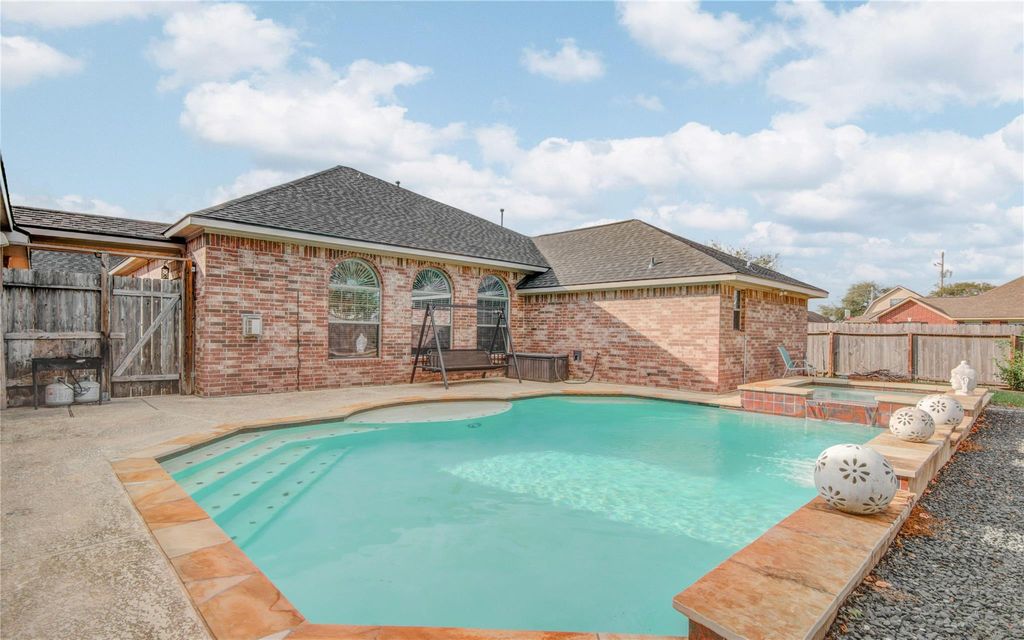 WOW! You’ll say it the moment you walk through the door of this spacious, open-concept single-story home on a private corner lot! Nestled in the highly sought-after Sedona community and zoned to Clear Creek ISD, this property truly has it all. Enjoy your own backyard retreat with a sparkling pool, oversized garage featuring a porte-cochere, and barn storage with a semi-finished space above the garage, perfect for a hobby room or extra storage. Inside, you’ll find 4 bedrooms, 3 full bathrooms, and a private home office/study. The chef-inspired kitchen is sure to impress with its high-end finishes and thoughtful upgrades throughout the home. 2024 Roof! LOW TAXES and NO MUD TAX! Don’t wait, call today to schedule your personal tour and experience this exceptional home for yourself!
