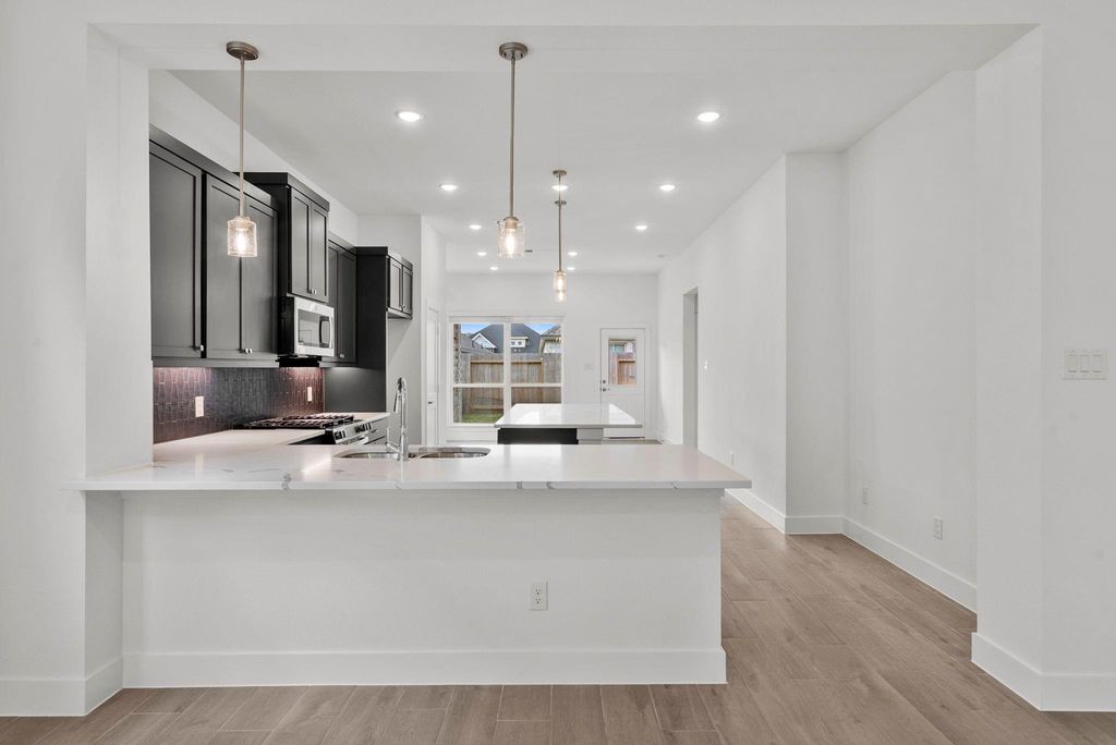 Situated in a cul-de-sac street & walking distance to the park, pool & playground, this home offers a great location and luxurious designer interior features. The kitchen offers 42" Carbon colored cabinetry, an oversized island with quartz countertops & black matte decorative tile backsplash. Porcelain natural wood look tile flooring throughout. Primary retreat includes a separate tub & walk-in shower. Oversized covered front porch with spray texture flooring. Separate living and dining areas with tall ceilings. 5" baseboards. Framed mirrors. Full sprinkler system, tankless water heater, garage door openers, 2" faux wood blinds & so much more!