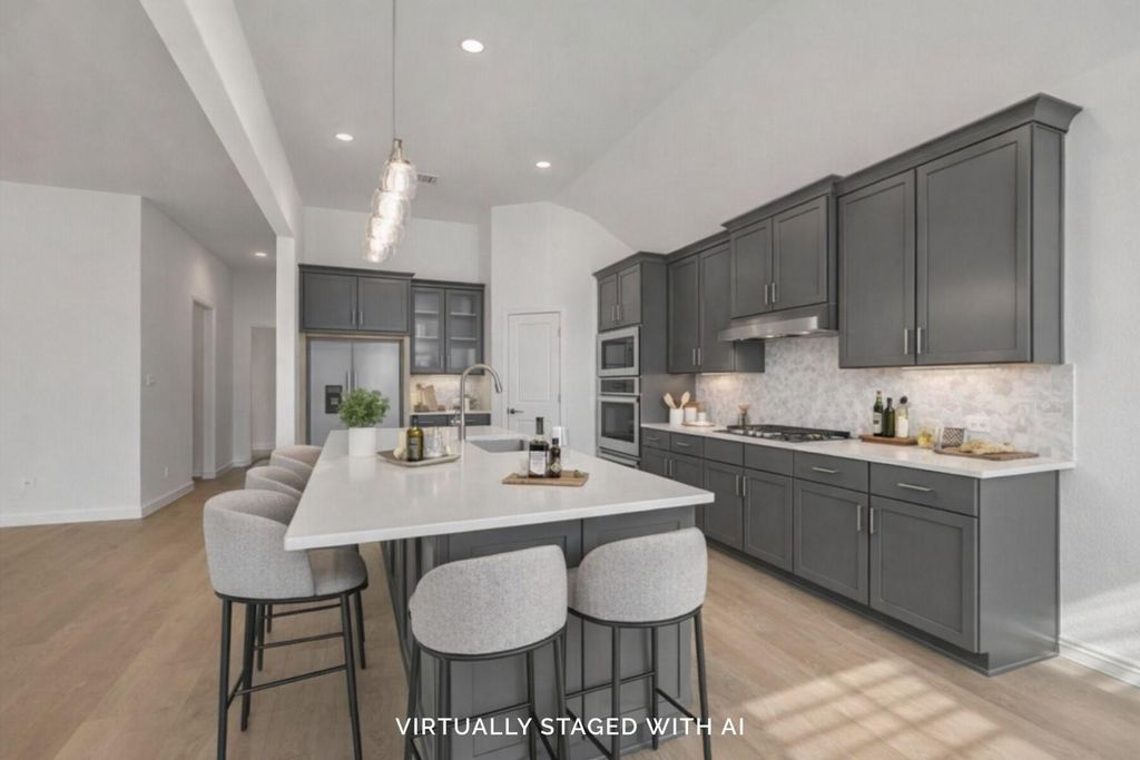 LOW TAX RATE OF 1.86% - NO MUD. HUGE HOMESITE – APROX 350’ DEEP! NO BACK NEIGHBORS! Sits on a half acre lot! The Nolan floorplan by M/I Homes has 4 bedrooms, 3 bathrooms, a study and a sideload 3-car garage. It offers over 2,833 sq ft of living space, including a private bedroom with a full bath and walk-in closet, two additional bedrooms, and main living and a study, kitchen, breakfast area, dining room, and family room. The kitchen has quartz countertops, built-in stainless steel appliances, a large island, and 42” cabinets. The owner's suite has sloped ceilings, an optional extended bay window, and a private bath retreat. There is also an extended covered patio with an outdoor kitchen rough in for outdoor entertainment. Front landscaping and irrigation are included. If you are interested in the Nolan plan please contact us and set an appointment today!