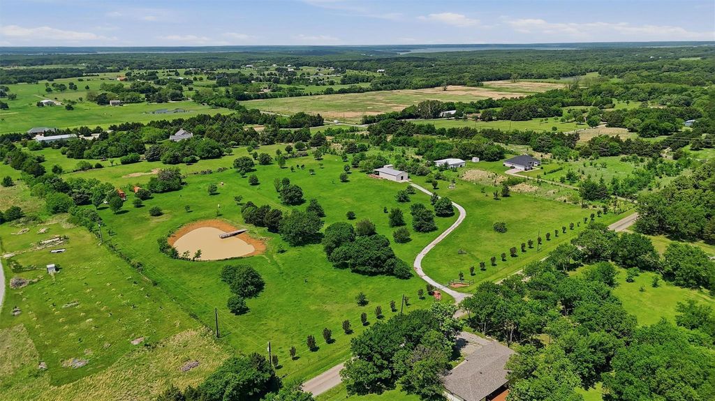 One of the most picturesque properties is now available. 13.65 breathtaking acres located within minutes of downtown Pottsboro and Lake Texoma, but outside the city limits. The property is fenced and cross fenced with a half acre stocked pond offering abundant pastureland for horses or livestock. This land currently has an ag exemption and is not in a flood zone. Also includes a 50x30 insulated metal building living quarters with full kitchen and bathroom and an attached 600sf covered patio perfect for morning coffee or evening cocktail while enjoying the Texas sky. Ideal for a weekend getaway or temporary residence while building your dream home. The house pad is already established. The Deep Well with whole house Culligan Water Filtration System provides water to the home and gardens. Additional Reverse Osmosis filter under the kitchen sink. Septic system with 1,000 gallon tank and drain field large enough to handle your new home and the metal building living quarters. Zoned HVAC. The pond has a dock to fish from and is stocked with catfish and perch. There are two storage containers in the pasture for feed and supplies. There is shooting berm at the back of the property. This property is a hidden gem minutes from one of the best recreational lakes in Texas, with easy access to the Metroplex, and within the very popular Pottsboro ISD. With the Barndominium this property offers immediate useability and space for your long term plans. Call your favorite realtor to schedule a visit. It's time to claim your slice of the Texas countryside.
