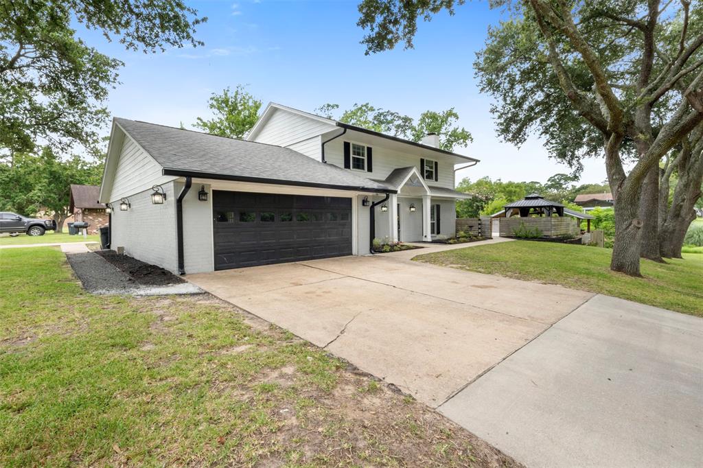 Don't miss this hidden gem located on a perfect lot surrounded by nature! Located adjacent to the new Joe Matthews Park, basketball courts and fishing hole! Improvements were made in 2022, include windows, doors, floors, kitchen, bathrooms, a/c, duct work, water heater, seamless gutters w/leaf guard & more! The custom designed kitchen features leathered granite counters,KraftMaid cabinetry w/soft close drawers, pull outs, floating shelves, stainless appliance package, & breakfast area. Primary suite is tucked away for privacy boasting a fabulous soaker tub, glass enclosed oversize shower, dual vessel sinks, granite vanity & French doors leading outside. Huge laundry room w/built-in cabinets & half bath. Family room is spacious w/cozy brick fireplace & backyard entry. Sparkling pool was re-plastered (2022), new coping and resurfaced cool deck. Recently constructed covered patio deck (2022), generator hook up (2024) City services and amenities!