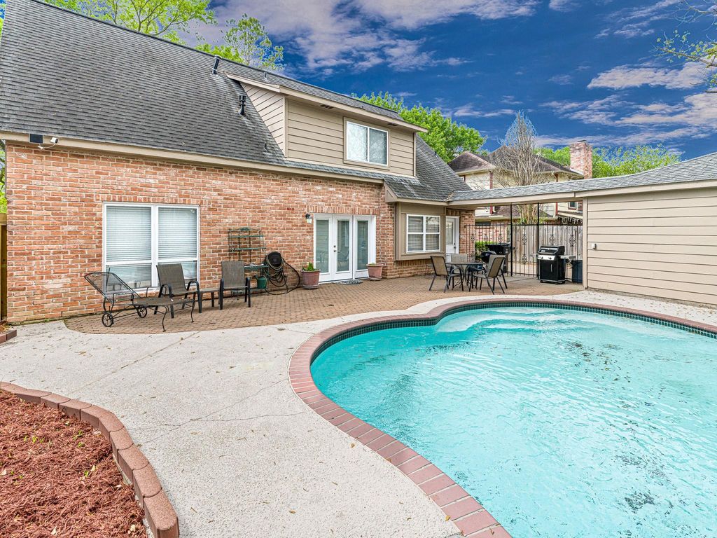 Pound-for-pound some of the best value for a home is right in this lovely section of Mission Bend. This home is a perfect example based on price, features, quality, and this wonderful in-ground pool. What a great environment at this affordable price. Check out the low taxes. Built by Merit Homes this lovely two story has the primary bedroom down, three large guest bedrooms upstairs. True to this builder, it came standard with lovely wood block paneling, storm windows, walk-in wet bar, and very generous bedroom sizes. The homeowner has done so much to this home just in the past few weeks. Updated flooring throughout including luxury vinyl and beautiful carpet. The interior was painted, toilets, sinks and counter tops replaced in the bathrooms. Lighting fixtures updated. Even the back French door replaced. Pex plumbing lines, HVAC system, water heater previously updated. Hardy plank siding added. Pool pump recently replaced. Even more updates. Walk to the elementary and middle schools.