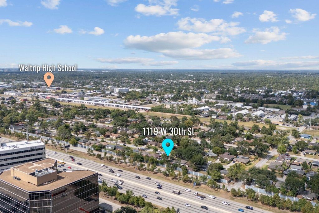 1119 W 30th St is listed for rent at $ 2,600. The Rental - Single Family Detached property has 3 bedrooms, 2 Full Bathrooms, 1304 square feet and was built in 1955. The lot size is 6820 Square feet. ##BR##Stunning Mid-Century home in Shepherd Forest/Oak Forest, recently updated to blend timeless charm with modern convenience. A xeriscaped front yard with lighting and Zoysia lawn leads to an inviting open floorplan featuring original hardwoods and abundant natural light. The chef’s kitchen includes granite countertops, custom cabinets, stainless appliances, and a high bar-top for entertaining. The primary suite offers dual vanities and a walk in shower, while the secondary bath includes a tub/shower combo. Major updates: electrical, sewer, HVAC with NEST (new unit 2025), double-pane windows, fresh paint, and a roof with radiant barrier and insulation. French doors open to a redesigned backyard with 600+ sqft deck, paver walkways, pergola with TV mount, firepit area, and fresh landscaping. Extras include instant hot water, soft-close cabinetry, alarm system, high ceilings, and window coverings. Convenient to The Heights, Galleria, and major freeways. Did not flood!