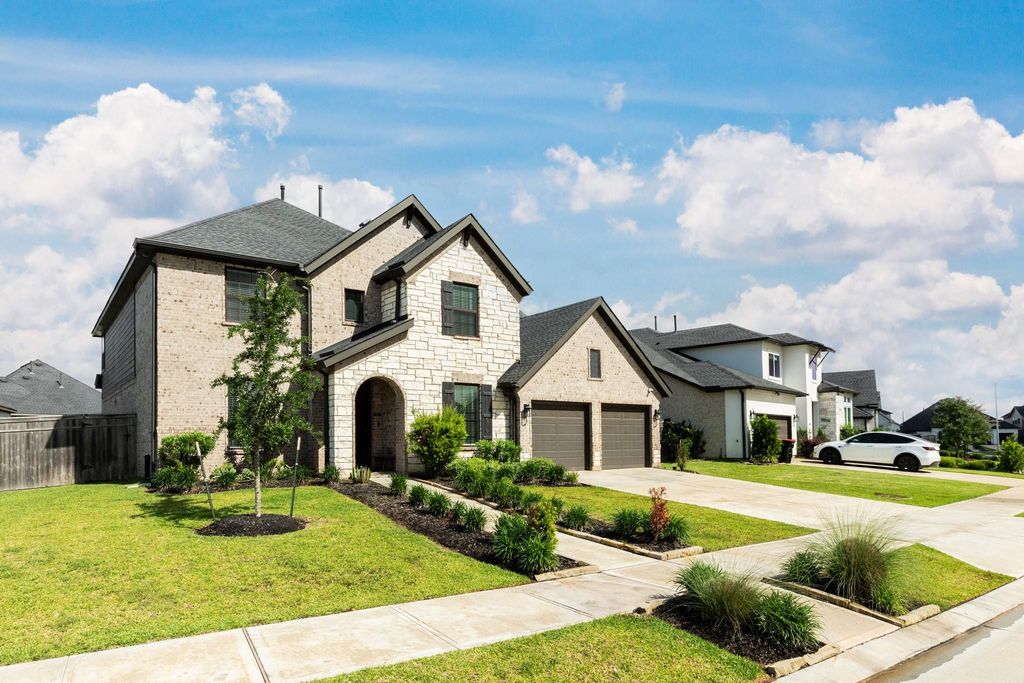 Welcome to this beautifully designed 4-bedroom, 3-bath home offering 3,678 square feet of spacious living. This two-story residence features a striking brick exterior and manicured landscaping creating exceptional curb appeal. Inside, you’ll find an open-concept layout with soaring ceilings, abundant natural light, and a grand entryway with a sweeping staircase. The spacious living area overlooks the second-floor balcony, adding architectural interest and an airy feel. The kitchen provides ample cabinetry, a large island, and plenty of counter space—perfect for entertaining or everyday living. The primary suite offers a private retreat with generous space, while additional bedrooms provide flexibility for guests, home office, or hobbies. Upstairs, a game room or secondary living space enhances functionality. Step outside to a large, fully fenced backyard with endless possibilities—ideal for a future pool, outdoor kitchen, or play area.