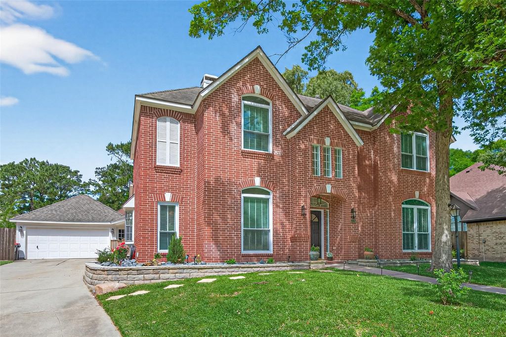 Beautiful home tucked at the end of a quiet cul-de-sac, just steps from the entrance to scenic greenbelt trails. This spacious layout offers 2 bedrooms downstairs—one ideal as a study or guest suite with access to a full bath—and 3 bedrooms upstairs, along with a large game room. Enjoy 2 full baths downstairs and 1 upstairs. The oversized primary suite features a newly renovated ensuite with a soaking tub and a large separate walk-in shower. Located in the heart of Kingwood, this home also includes a rare Texas basement upstairs for extra storage. A wonderful opportunity to make it your own! Refrigerator is included. Room measurements are approximate, if important, please measure for accuracy.
