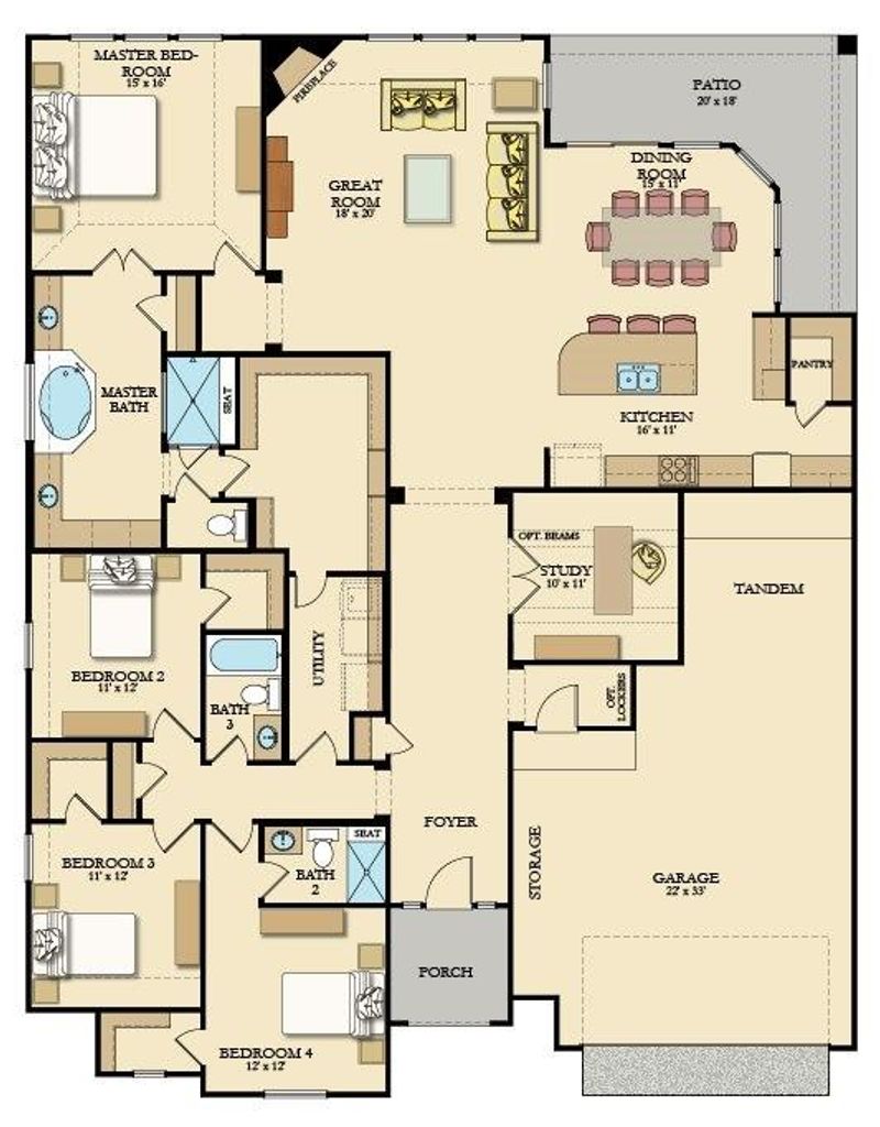 Beautiful Village Builders Wentworth Series “Norwalk” in Kingwood Royal Brook! This modern single-story home offers 4 bedrooms, 3 baths, a private study with French doors, open dining area, and a 3-car garage! The gourmet island kitchen features granite countertops, custom J. Kraft cabinetry, gas cooktop, double ovens, stainless appliances, and a walk-in pantry. The spacious family room showcases a corner fireplace with floor-to-mantel tile surround and durable tile plank flooring throughout the main living areas. The luxurious primary suite includes dual sinks, soaking tub, separate shower, and an exceptional upgraded walk-in closet with custom built-ins and direct access to the utility room. Enjoy a covered patio with no rear neighbors. Additional highlights include a garage workshop space, generator hookup readiness, 16 SEER HVAC, and Wi-Fi CERTIFIED smart home features. Community amenities include a pool, playgrounds, sports courts, and scenic walking trails. Move-in ready!
