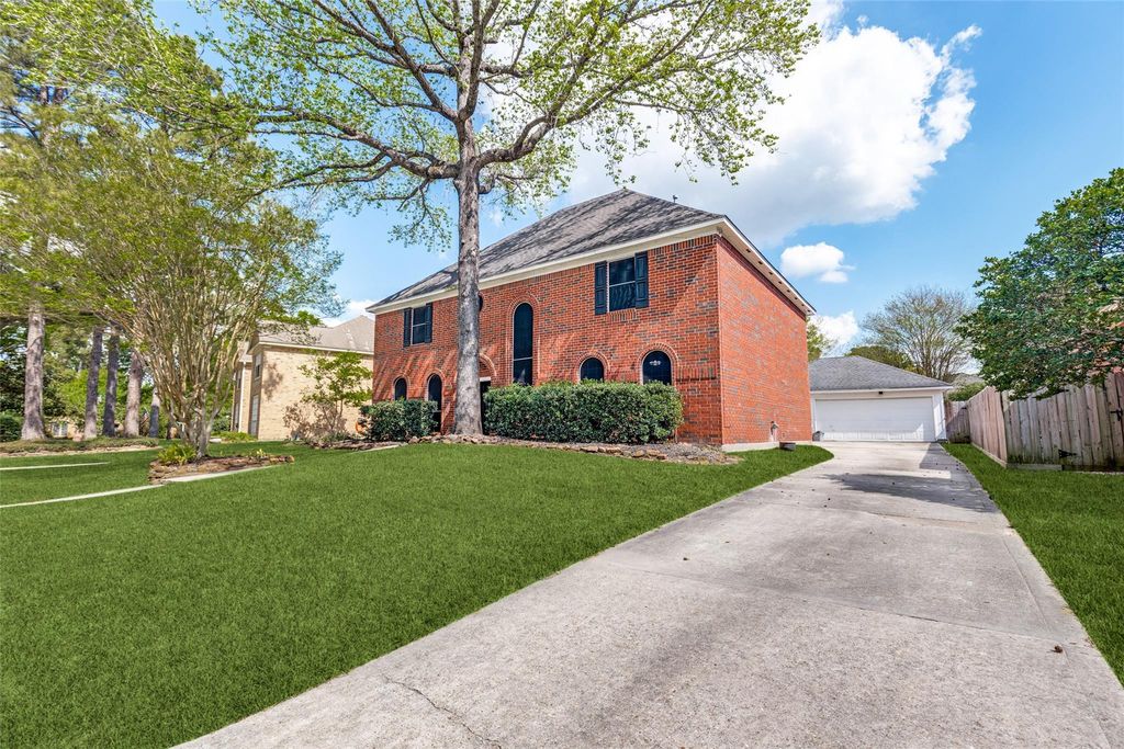 Beautiful 2-story home in the highly desirable Greentree Village of Kingwood! This 4-bed/2.5-bath home features a grand 2-story foyer & light-filled, open-concept layout perfect for modern living. The spacious living, kitchen, & dining areas flow seamlessly, highlighted by a large island, stunning granite countertops, sleek microwave drawer, coffee bar, & an abundance of cabinetry. Downstairs showcases luxury vinyl plank flooring, formal dining, a versatile den ideal for a home office or playroom, large utility room, & convenient half bath. Upstairs, the expansive primary suite offers 2 walk-in closets & spa-like bath w/dual sinks, vanity area, soaking tub, & oversized tiled shower. 3 generously sized secondary bedrooms & a full bath, w/2 sink areas & tub/shower combo, complete the upper level. Enjoy the fully fenced backyard w/patio—perfect for entertaining! Oversized insulated 2-car garage w/built-in shelving. Compressor replaced in 2025. Don't miss out on this lovely home!