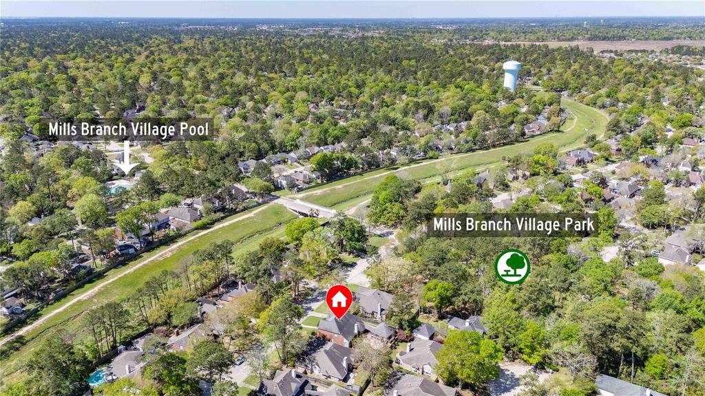 Tucked in Mills Branch Village, this David Weekley home offers 3 bedrooms, 2.5 baths, formal living and dining, and a spacious game room with access to a Texas attic. The layout is ideal for everyday living and entertaining. The kitchen features granite countertops, tile flooring, a built-in oven and microwave, and opens to bright living spaces with high ceilings and a gas fireplace. The primary suite provides a relaxing retreat with a jetted corner soaking tub and a frameless shower with dual and rain shower heads. The backyard is designed for enjoyment, featuring a flagstone patio, covered outdoor kitchen with built-in grill, side burner, and 2-compartment sink with hot water, along with landscape lighting, water fountain, mosquito misting system, and covered dog patio. Fruit trees and herbs add to the outdoor space. Detached 2-car garage. Walking distance to community pool (one block) and a few houses from Settegast Park. Schedule your showing! (house did not flood during Harvey)