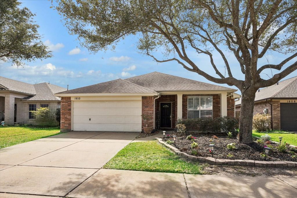 1610 Eberhart Star Ct is listed for sale at $ 359,900. The Single-Family property has 3 bedrooms, 2 Full Bathrooms, 1821 square feet and was built in 2005. The lot size is 5688 Square feet. ##BR##Affordable and Adorable: Currently zoned to Tomkins High School in highly rated KISD. Some homes just get it right. The moment you step through the door, you feel it; the warmth, the style, and yes, this is the one! Arched doorways, wood-shuttered windows, light that spills in just right. Rich LVP floors, chic lighting, a kitchen that makes you want to cook even if you don’t. Granite counters, freshly painted cabinetry, bar seating, and a sunny breakfast nook where morning coffee just tastes better. Formal dining and a spacious family room flow the way real life actually works. The owner’s retreat is your exhale. Deep walk-in closet, spa ensuite with glass-enclosed shower and dual vanities. Guest bedrooms are roomy, and the updated bath holds its own. Covered patio, fenced yard. This one’s been loved. Come snag it before someone else does!